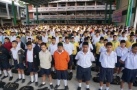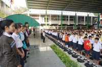 กิจกรรมหน้าเสาธงเวลาเช้าโรงเรียนราชวินิตบางแคปานขำ