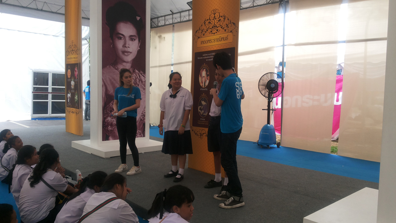 นักเรียนร่วมงานเฉลิมพระเกียรติสมเด็จพระนางเจ้าสิริกิติ์ พระบรมราชินีนาถ เนื่องในโอกาสมหามงคลเฉลิมพระชนมพรรษา 82 พรรษา โดยงานจัดขึ้น ระหว่างวันที่ 12 - 15 สิงหาคม 2557 ณ กระทรวงศึกษาธิการ |