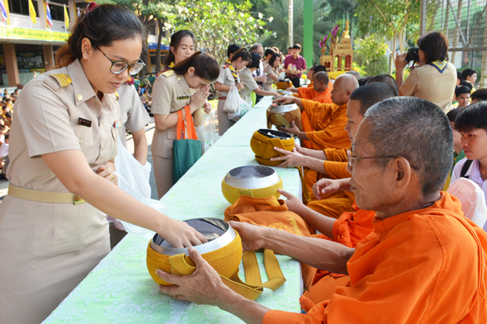 กิจกรรมตักบาตรข้าวสารอาหารแห้ง เนื่องในพิธีบำเพ็ญกุศลพระศพสมเด็จพระญาณสังวรฯ 14 ธ.ค. 58