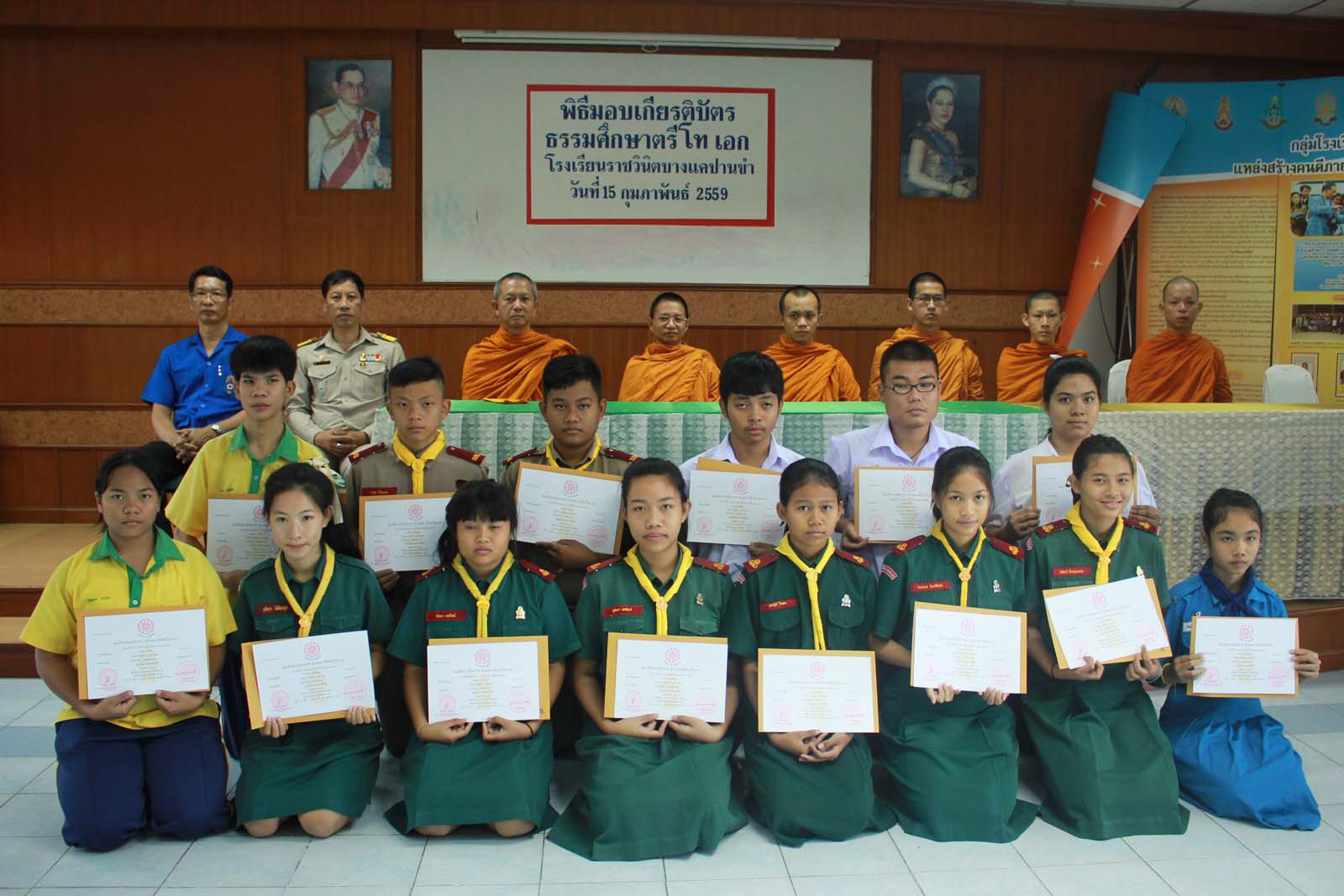 พิธีมอบเกียรติบัตรธรรมศึกษาตรี โท เอก : 15 ก.พ. 59