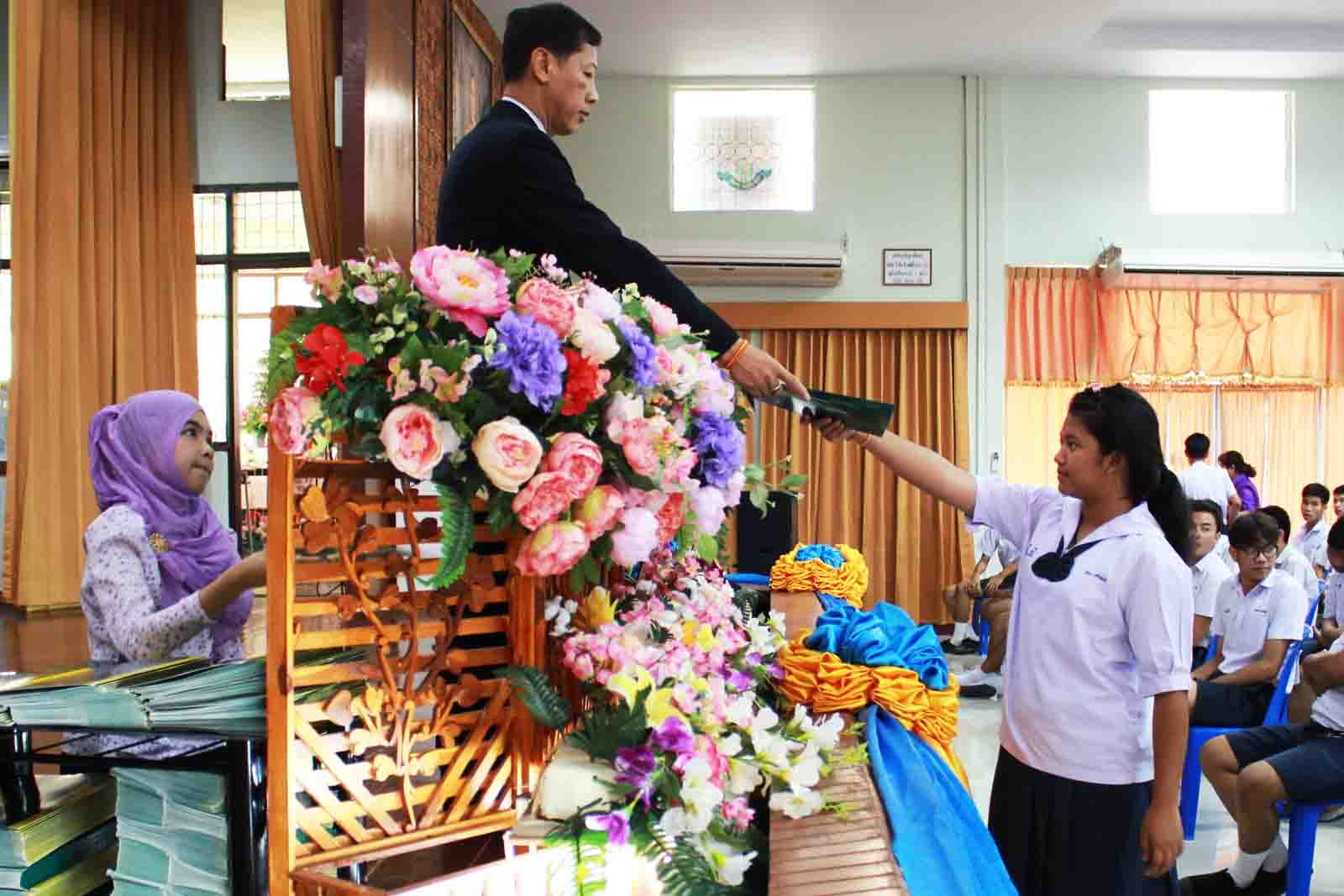 พิธีมอบประกาศนียบัตร ประจำปีการศึกษา 2558 ให้กับนักเรียนที่จบการศึกษาระดับชั้นมัธยมศึกษาปีที่ 3 จำนวน 276 คน และระดับชั้นมัธยมศึกษาปีที่ 6 จำนวน 225 คน รวมจำนวนนักเรียนที่รับประกาศนียบัตรทั้งสิ้น 501 คน