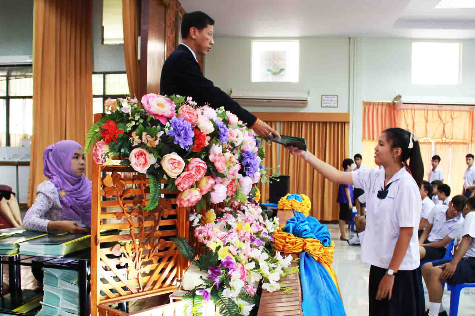 พิธีมอบประกาศนียบัตร ประจำปีการศึกษา 2558 ให้กับนักเรียนที่จบการศึกษาระดับชั้นมัธยมศึกษาปีที่ 3 จำนวน 276 คน และระดับชั้นมัธยมศึกษาปีที่ 6 จำนวน 225 คน รวมจำนวนนักเรียนที่รับประกาศนียบัตรทั้งสิ้น 501 คน