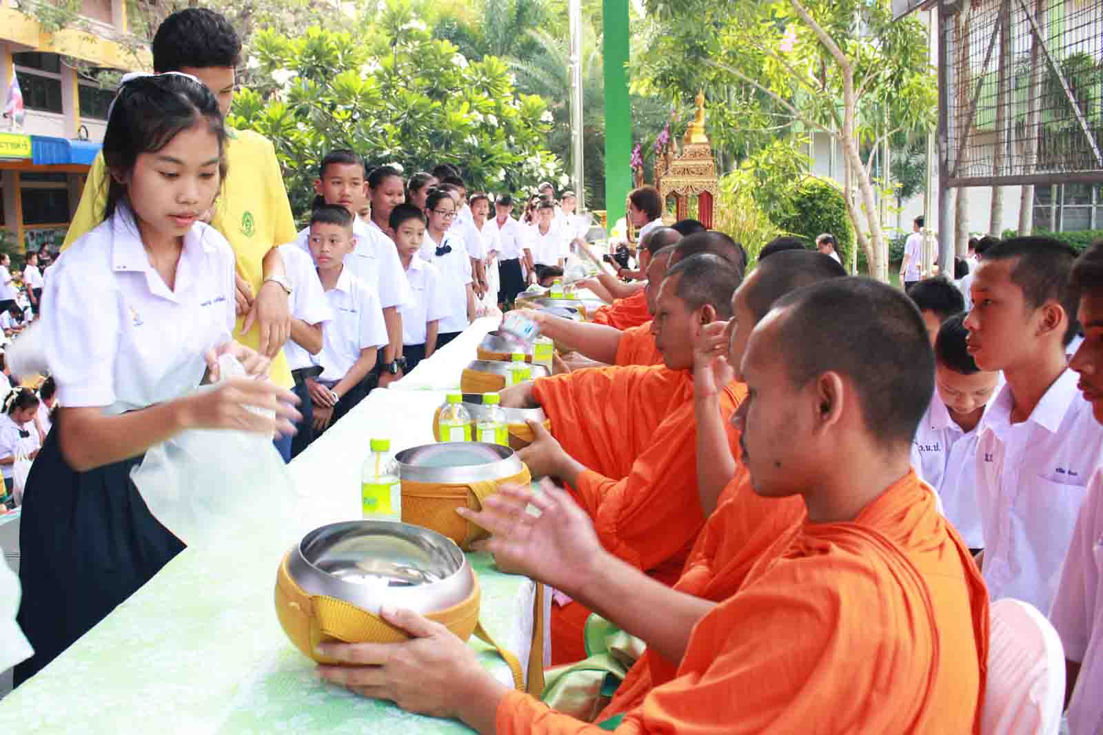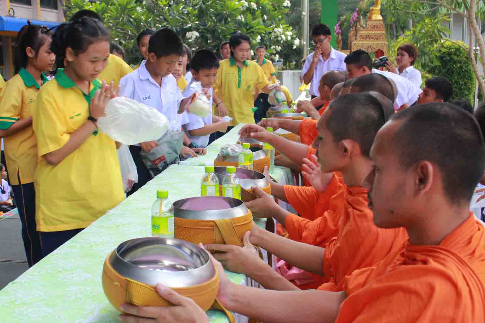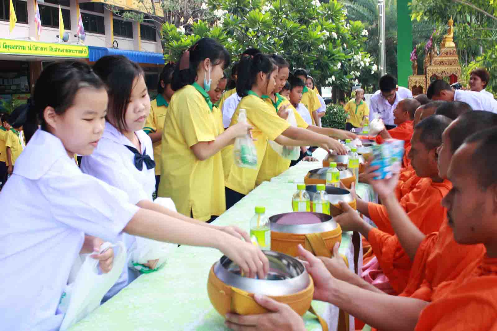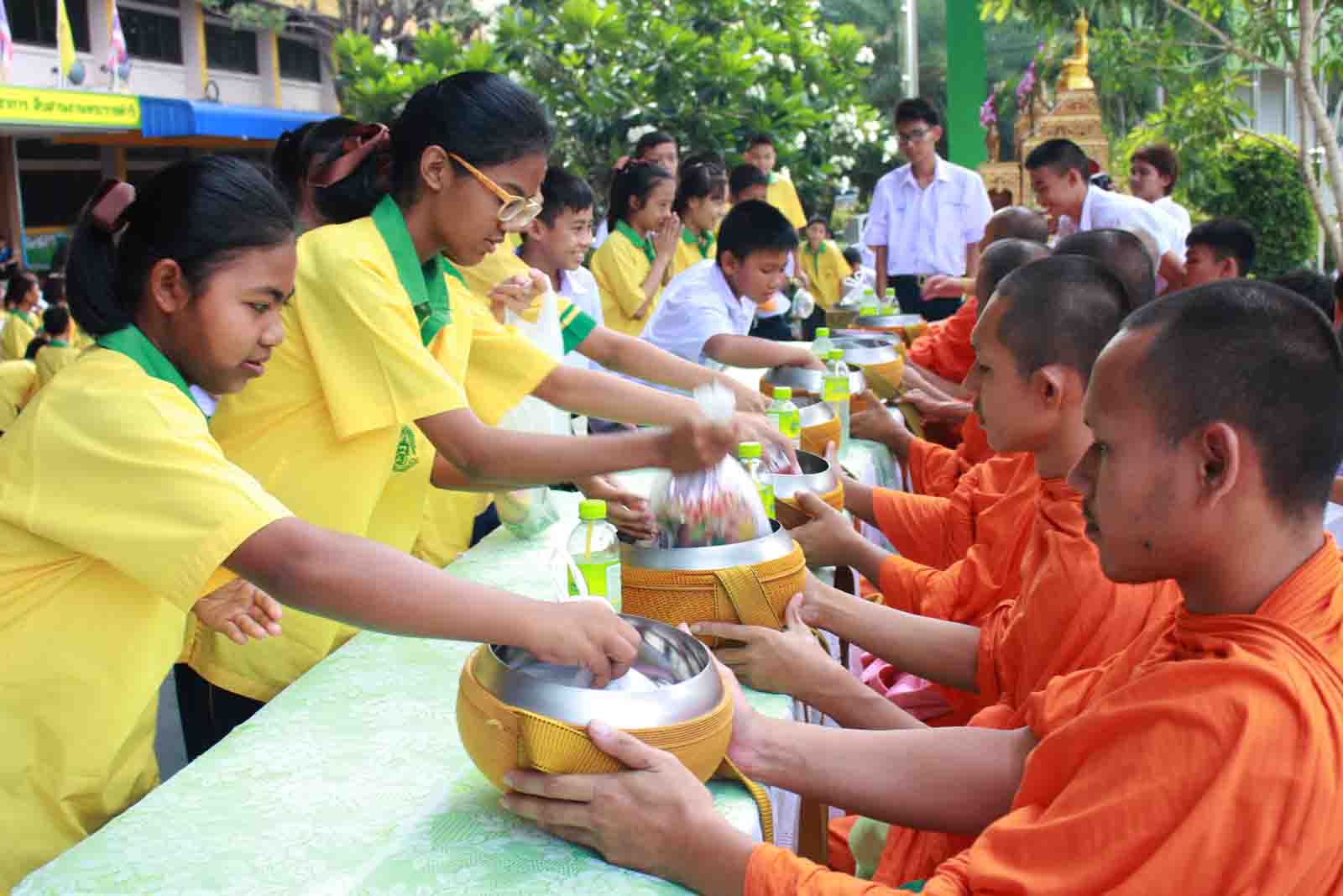 กิจกรรมทำบุญตักบาตรข้าวสารอาหารแห้ง ตามโครงการโรงเรียนวิถีพุทธ วันศุกร์แรกของเดือน ประจำปีการศึกษา 2559