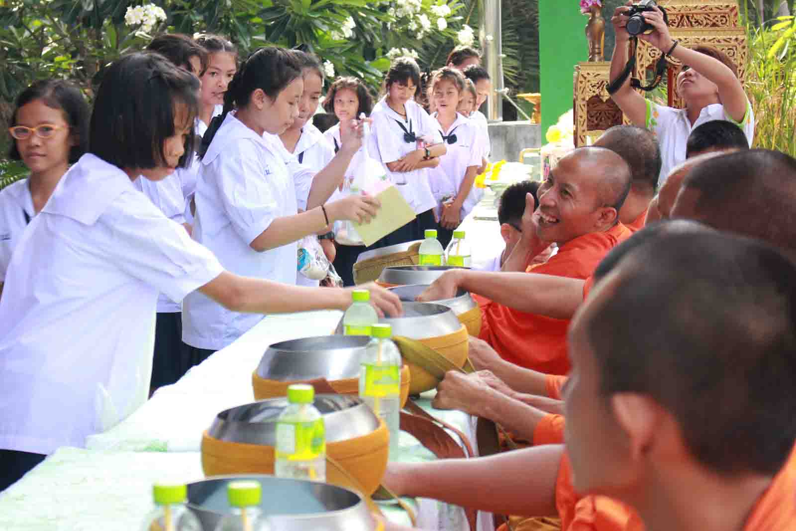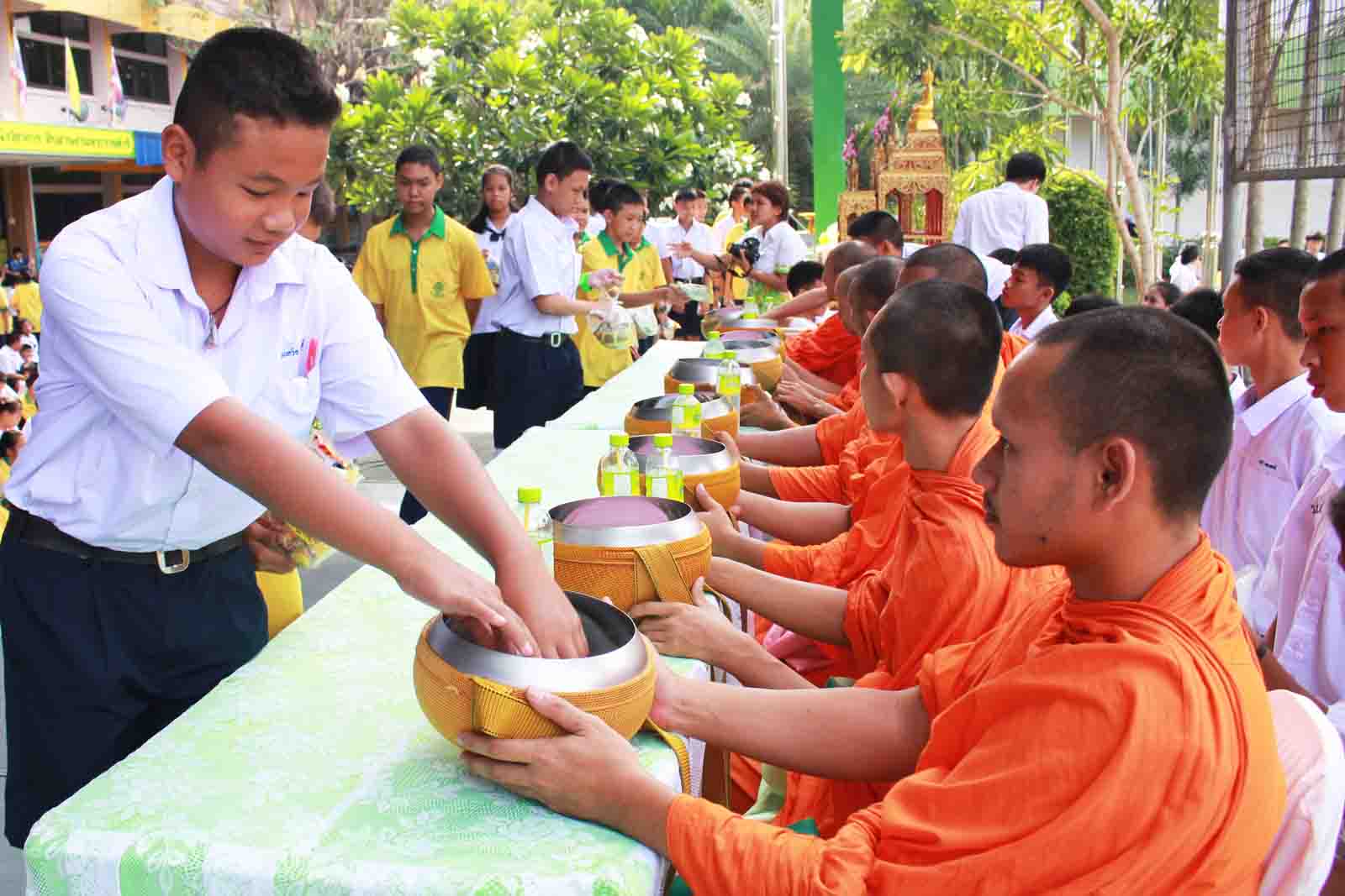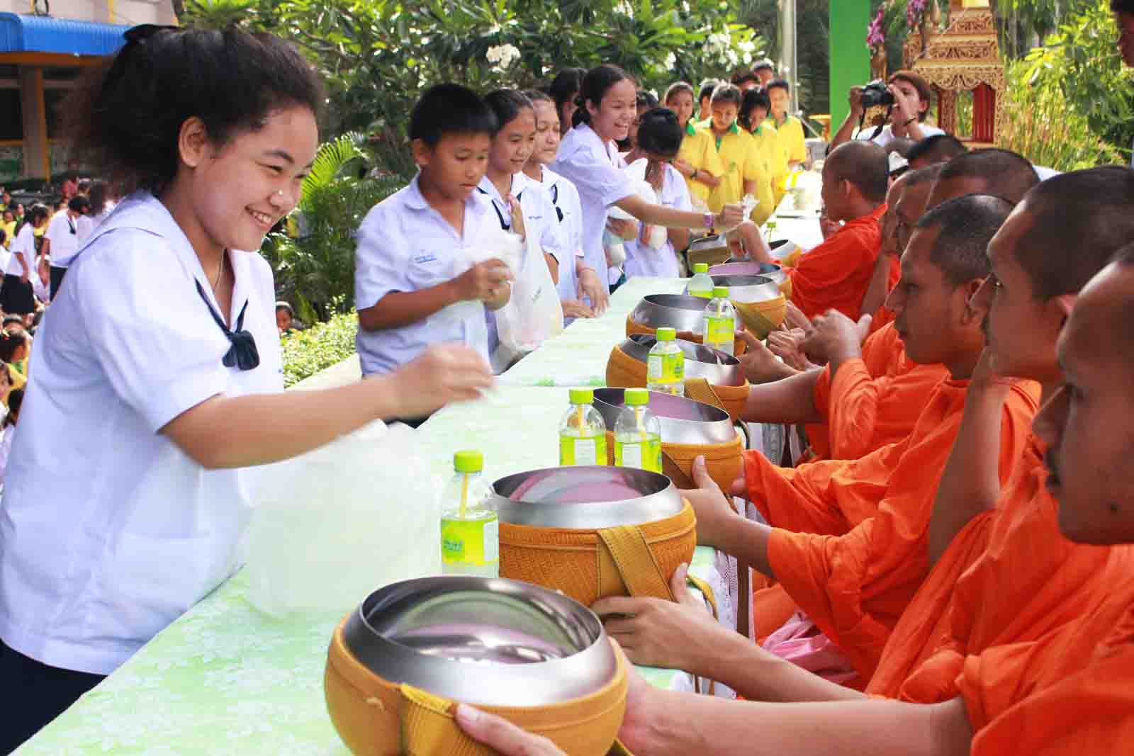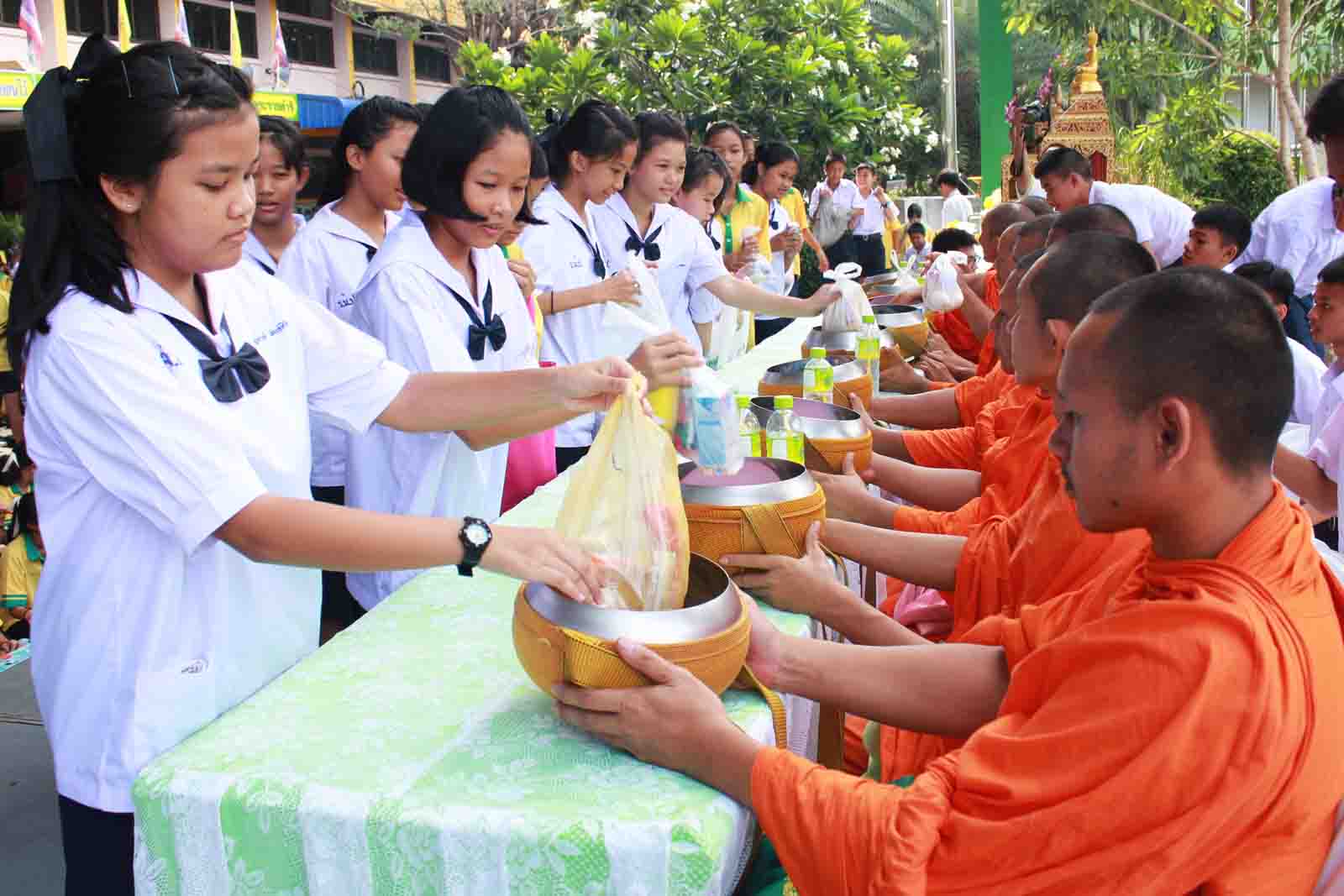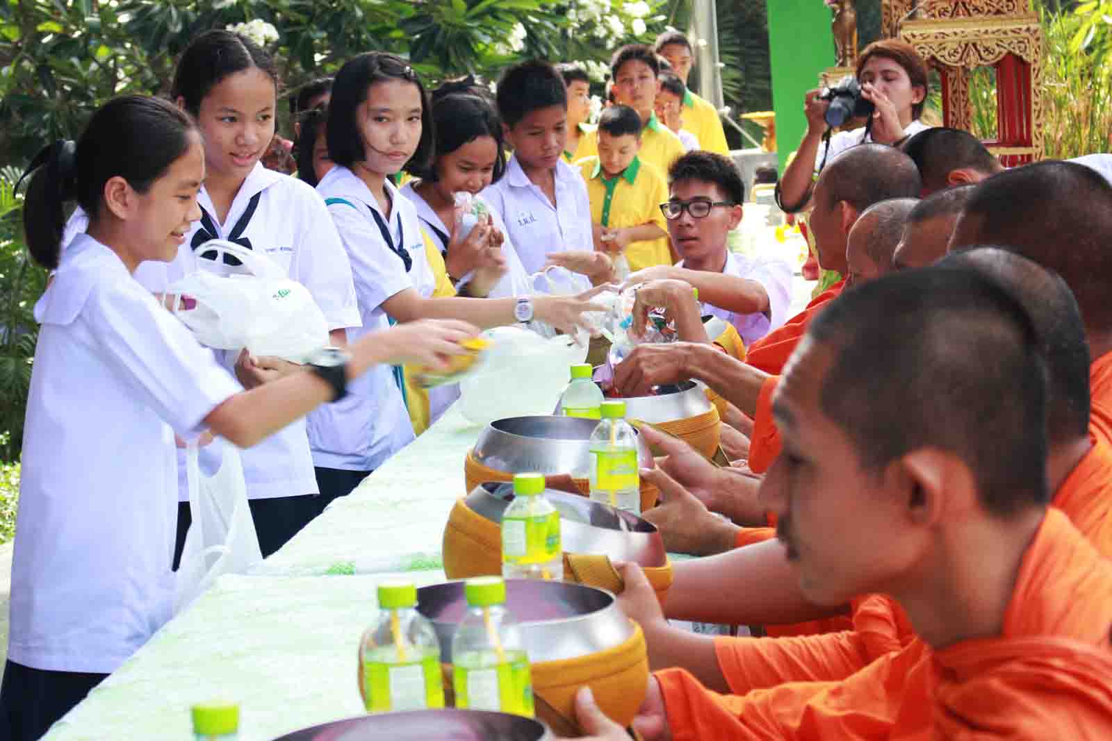 กิจกรรมทำบุญตักบาตรข้าวสารอาหารแห้ง ตามโครงการโรงเรียนวิถีพุทธ วันศุกร์แรกของเดือน ประจำปีการศึกษา 2559