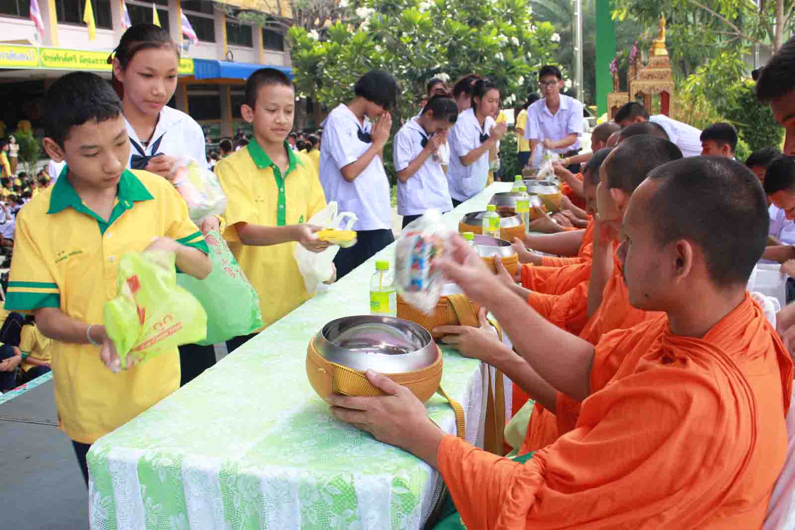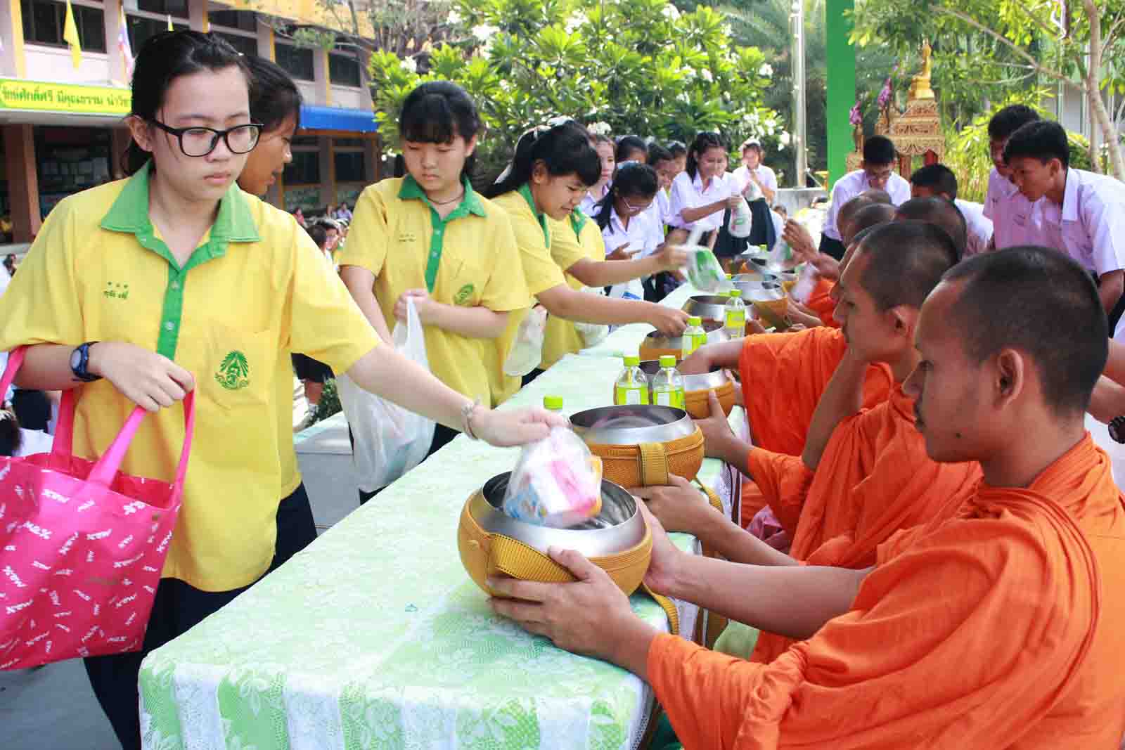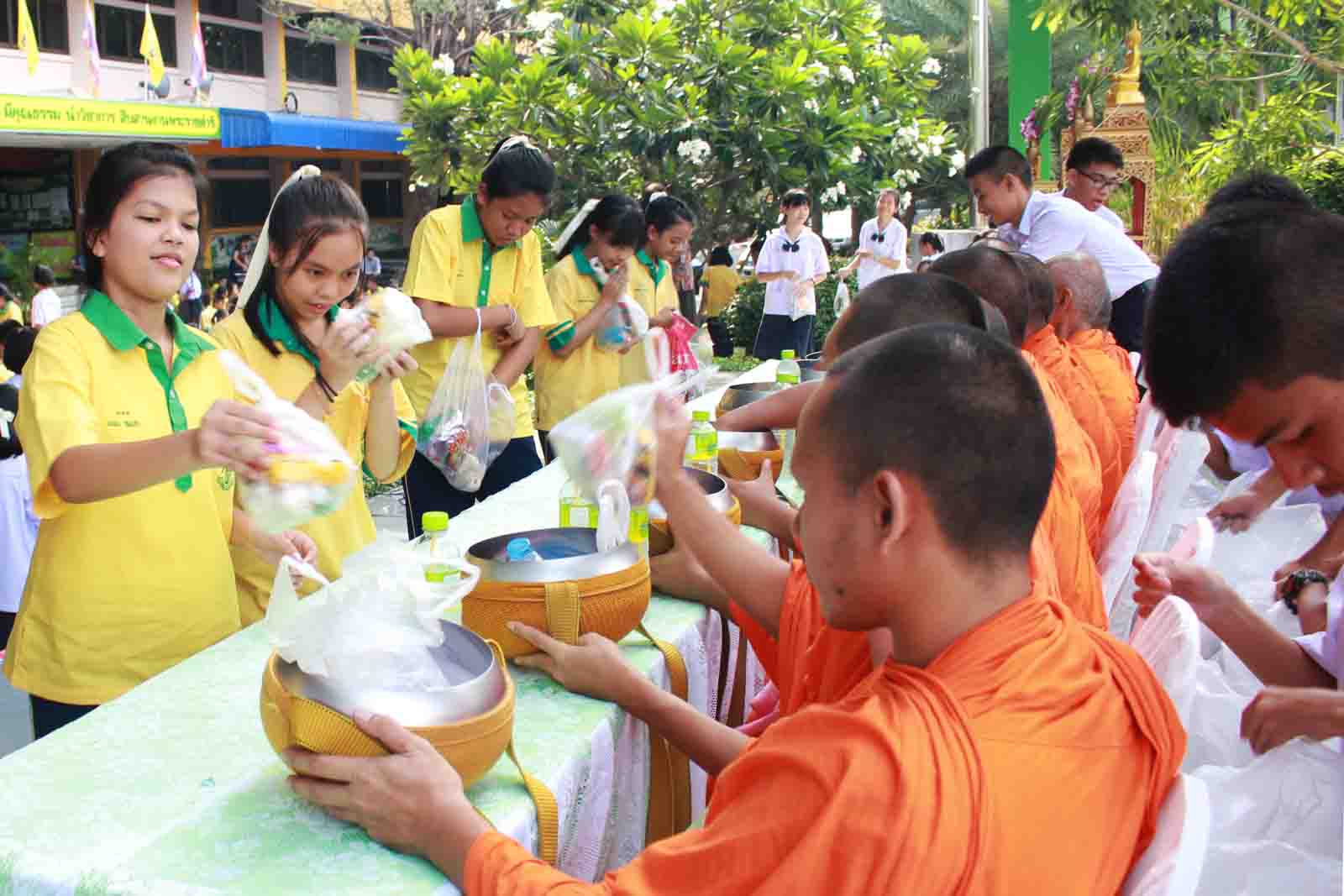 กิจกรรมทำบุญตักบาตรข้าวสารอาหารแห้ง ตามโครงการโรงเรียนวิถีพุทธ วันศุกร์แรกของเดือน ประจำปีการศึกษา 2559