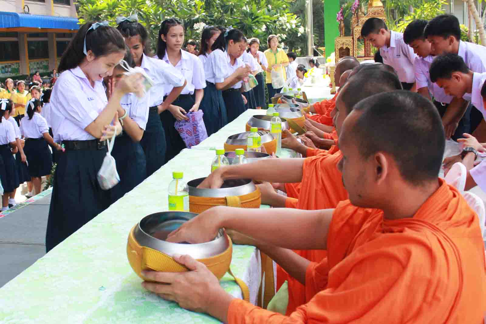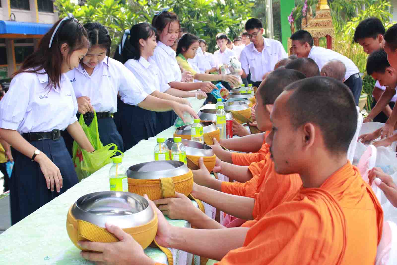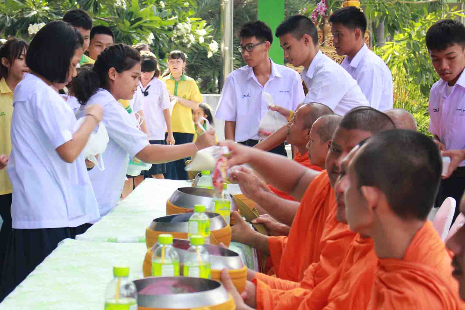 กิจกรรมทำบุญตักบาตรข้าวสารอาหารแห้ง ตามโครงการโรงเรียนวิถีพุทธ วันศุกร์แรกของเดือน ประจำปีการศึกษา 2559