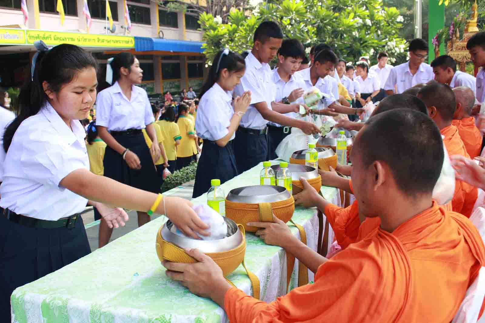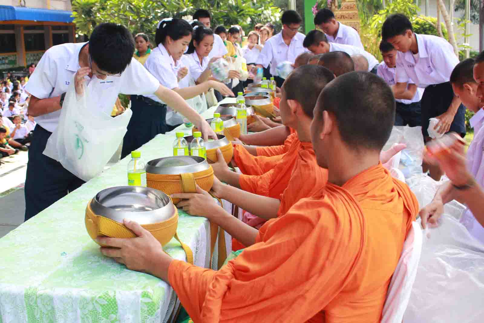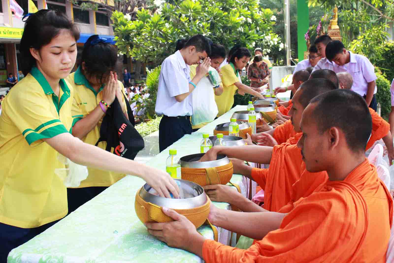 กิจกรรมทำบุญตักบาตรข้าวสารอาหารแห้ง ตามโครงการโรงเรียนวิถีพุทธ วันศุกร์แรกของเดือน ประจำปีการศึกษา 2559