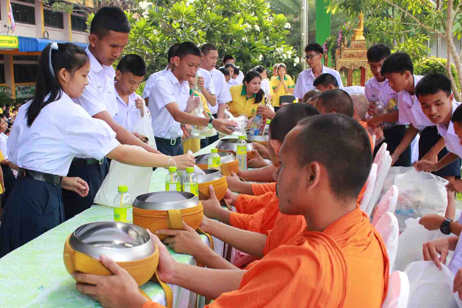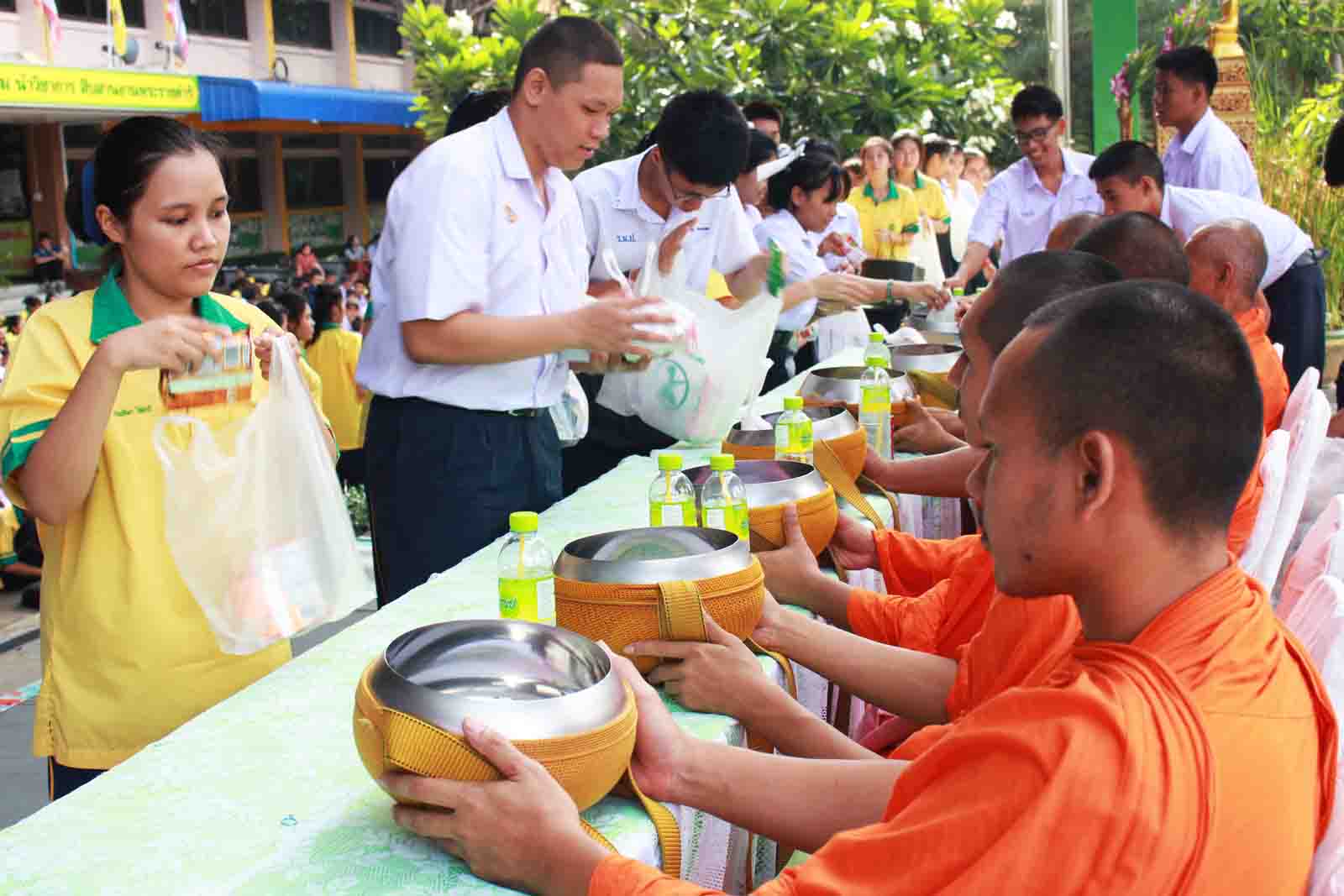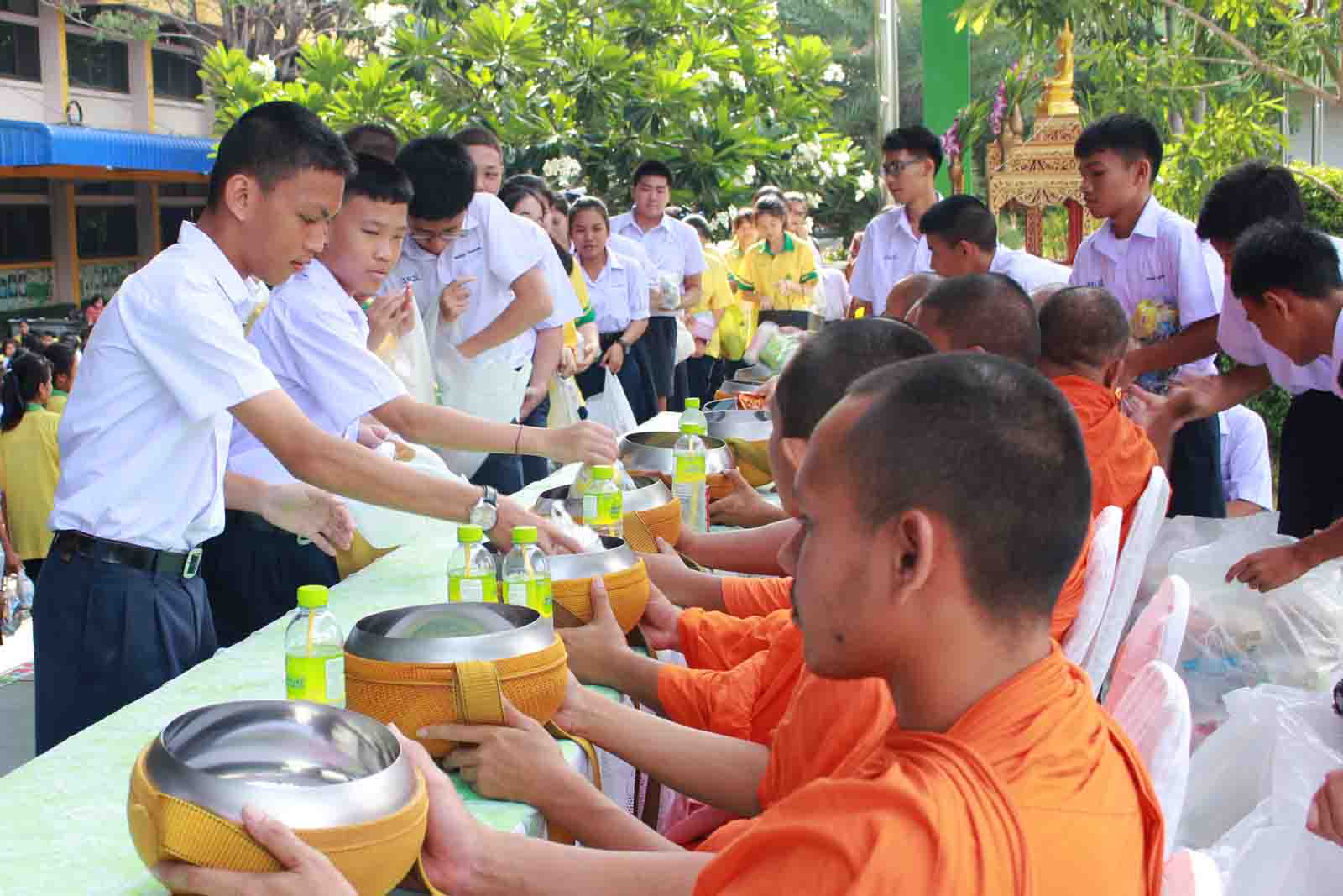 กิจกรรมทำบุญตักบาตรข้าวสารอาหารแห้ง ตามโครงการโรงเรียนวิถีพุทธ วันศุกร์แรกของเดือน ประจำปีการศึกษา 2559