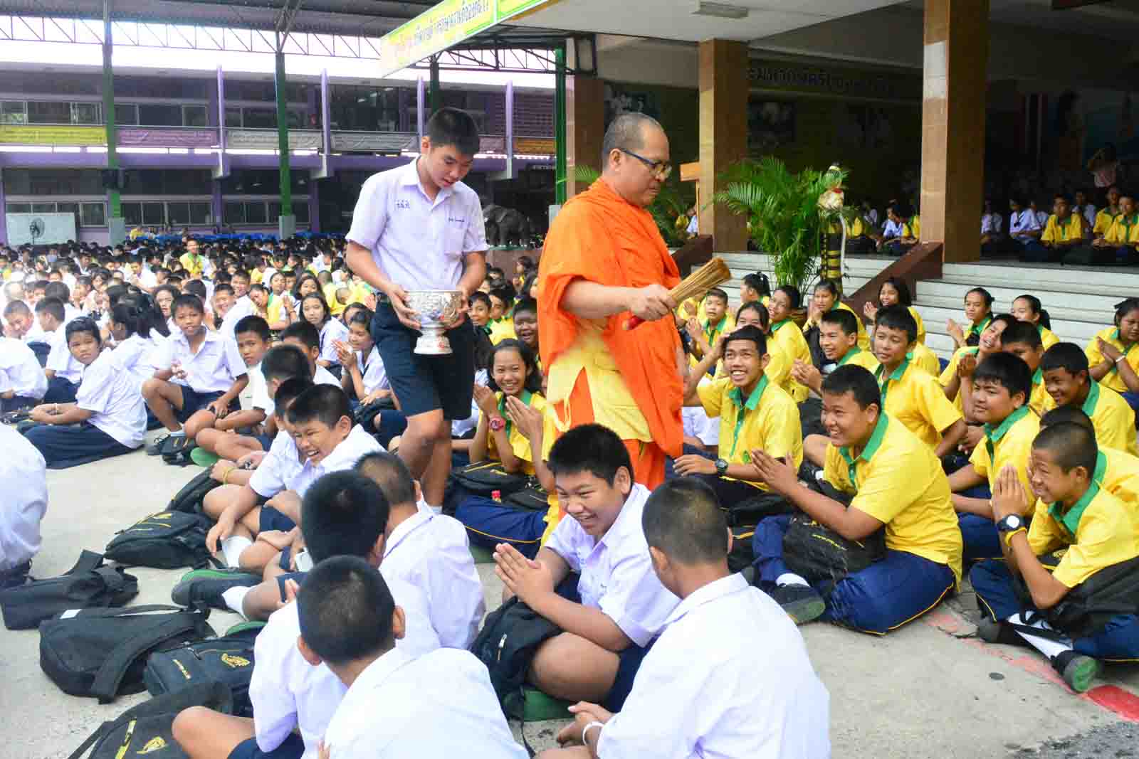 กิจกรรมทำบุญตักบาตรข้าวสารอาหารแห้ง ตามโครงการโรงเรียนวิถีพุทธ วันศุกร์แรกของเดือน ประจำปีการศึกษา 2559