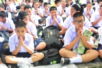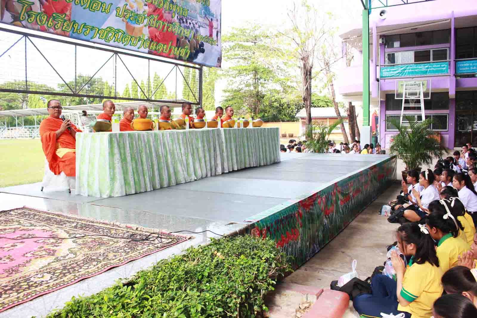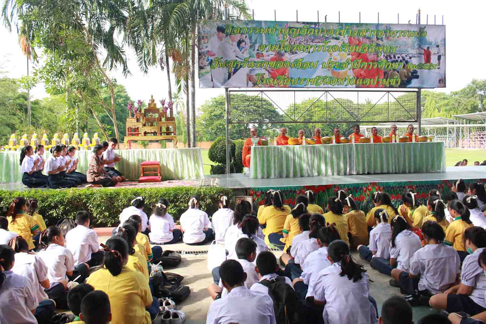 กิจกรรมทำบุญตักบาตรข้าวสารอาหารแห้ง ตามโครงการโรงเรียนวิถีพุทธ วันศุกร์แรกของเดือน ประจำปีการศึกษา 2559