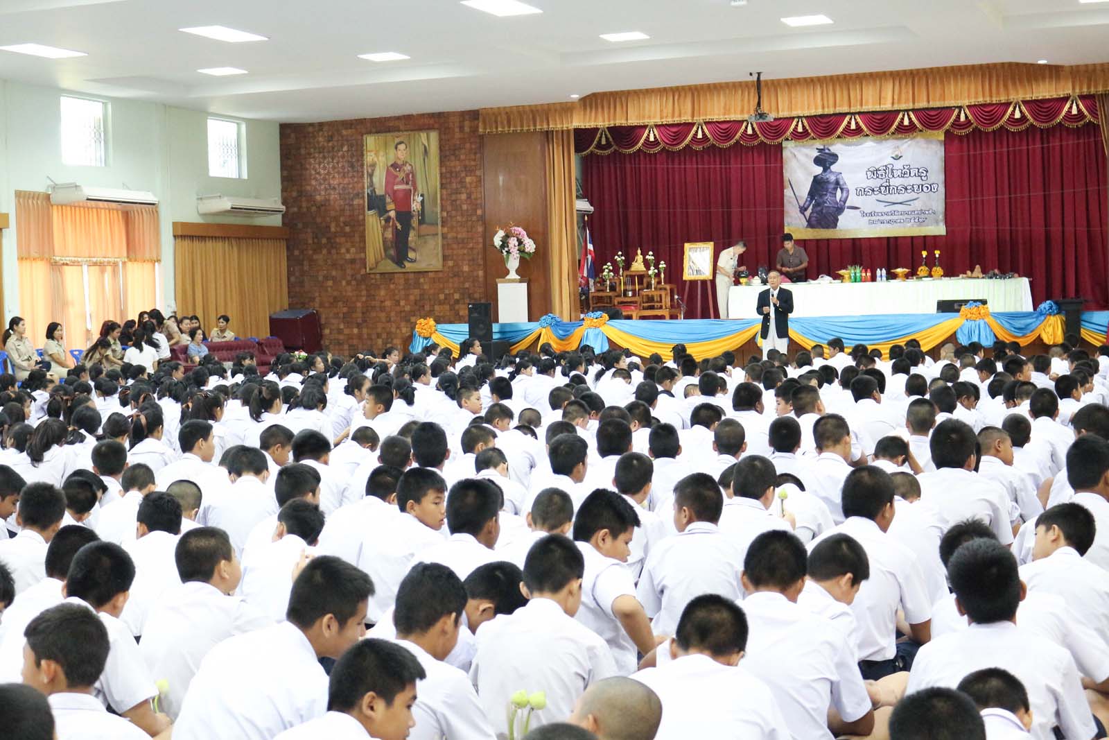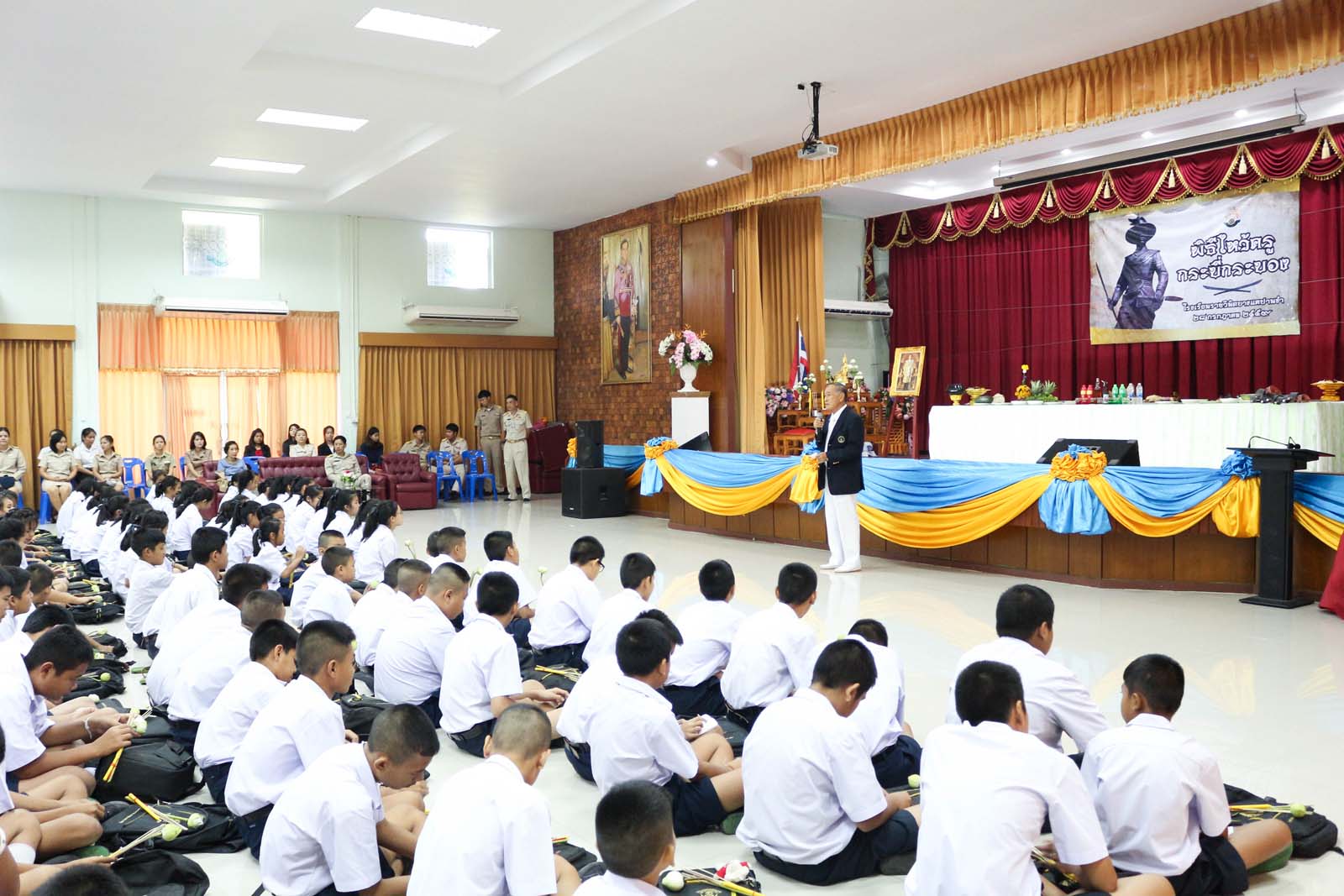 โดยมีนักเรียนชั้นมัธยมศึกษาปีที่ 1 และชั้นมัธยมศึกษาปีที่ 2 เข้าร่วมพิธี