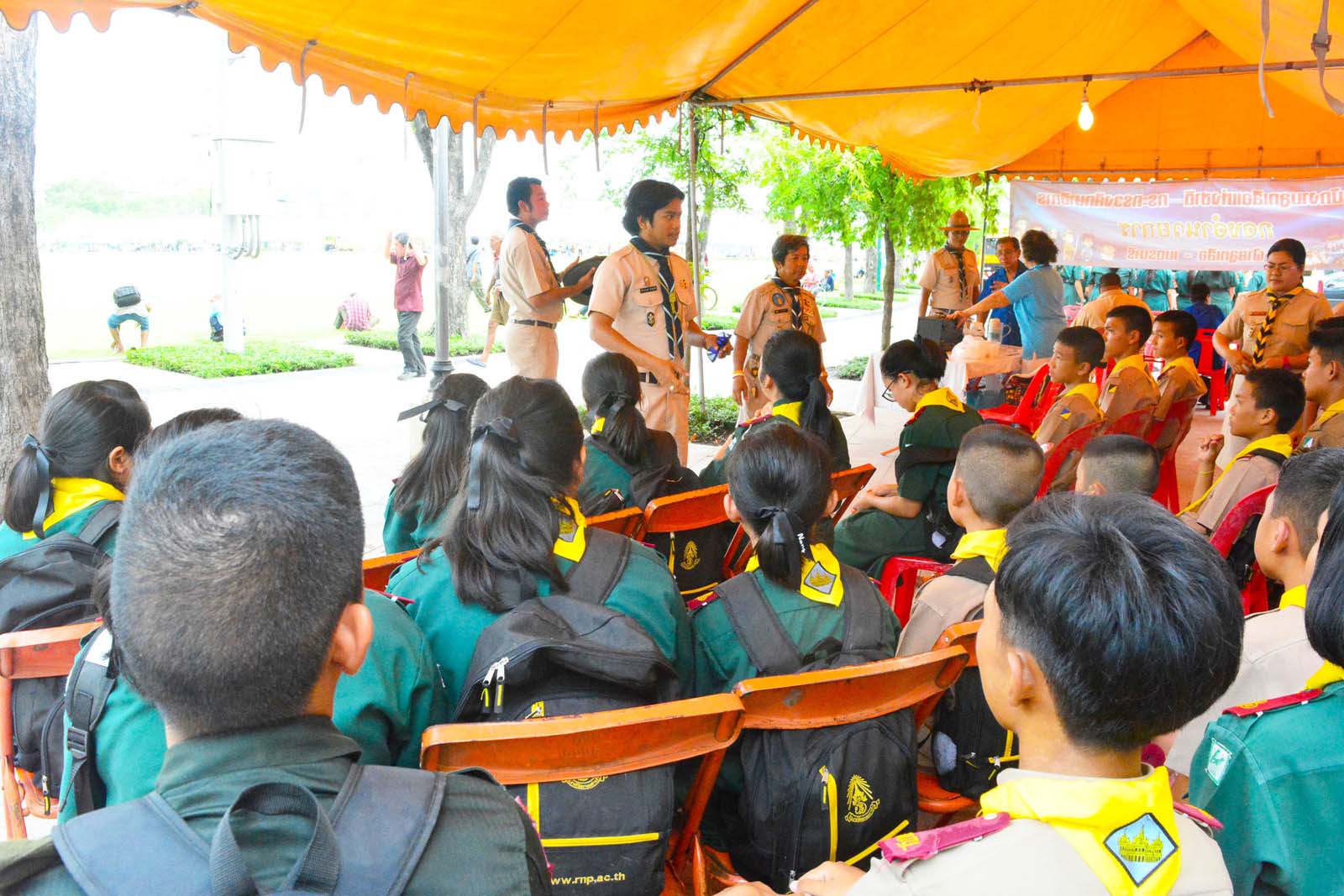 ลูกเสือและเนตรนารี ของนักเรียนโรงเรียนราชวินิตบางแคปานขำ ร่วมบำเพ็ญประโยชน์ ณ มณฑลพิธีท้องสนามหลวง