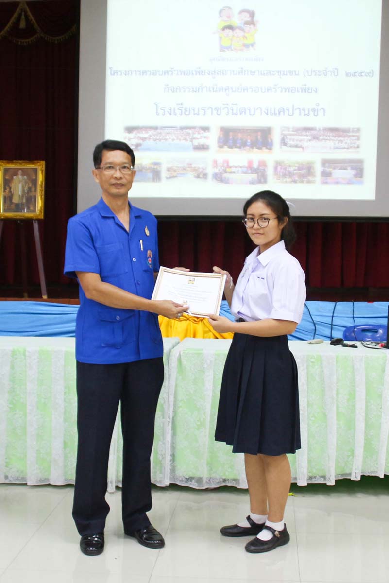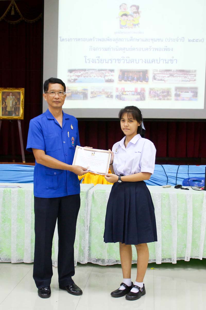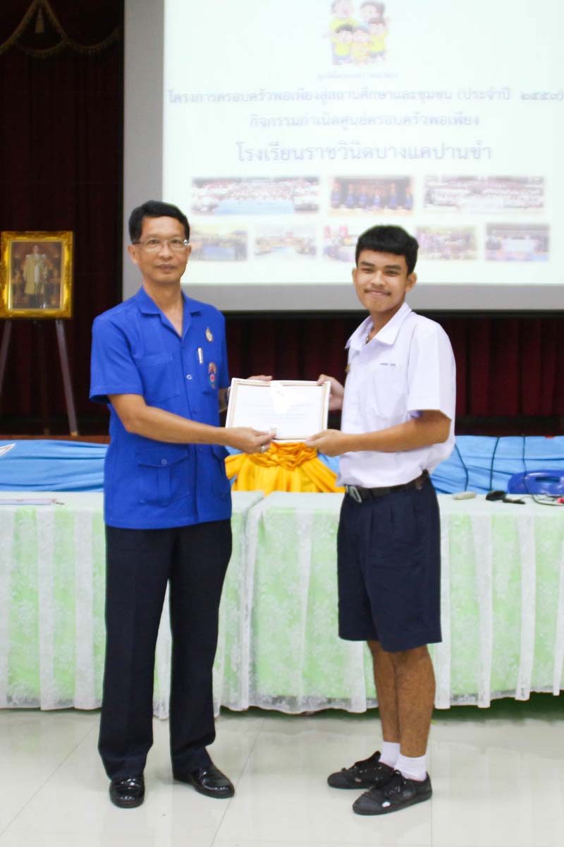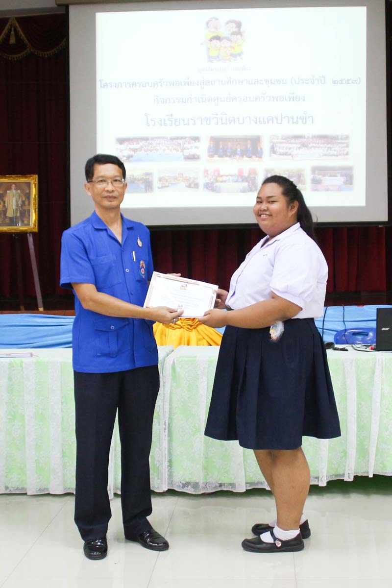 โครงการครอบครัวพอเพียงสู่สถานศึกษาและชุมชน ประจำปี 2559 โดยครอบครัวมูลนิธิพอเพียง ร่วมกับ โรงเรียนราชวินิตบางแคปานขำ ได้จัดกิจกรรมกำเนิดศูนย์ครอบครัวพอเพียงให้กับนักเรียนชั้นมัธยมศึกษาปีที่ 4 ในวันจันทร์ที่ 22 สิงหาคม 2559 ณ หอประชุมโรงเรียนราชวินิตบางแคปานขำ |