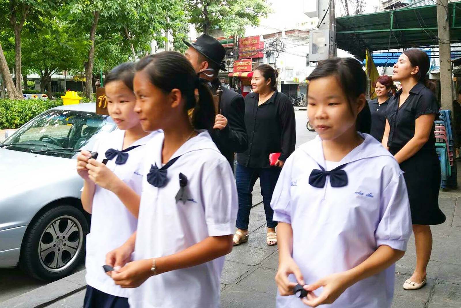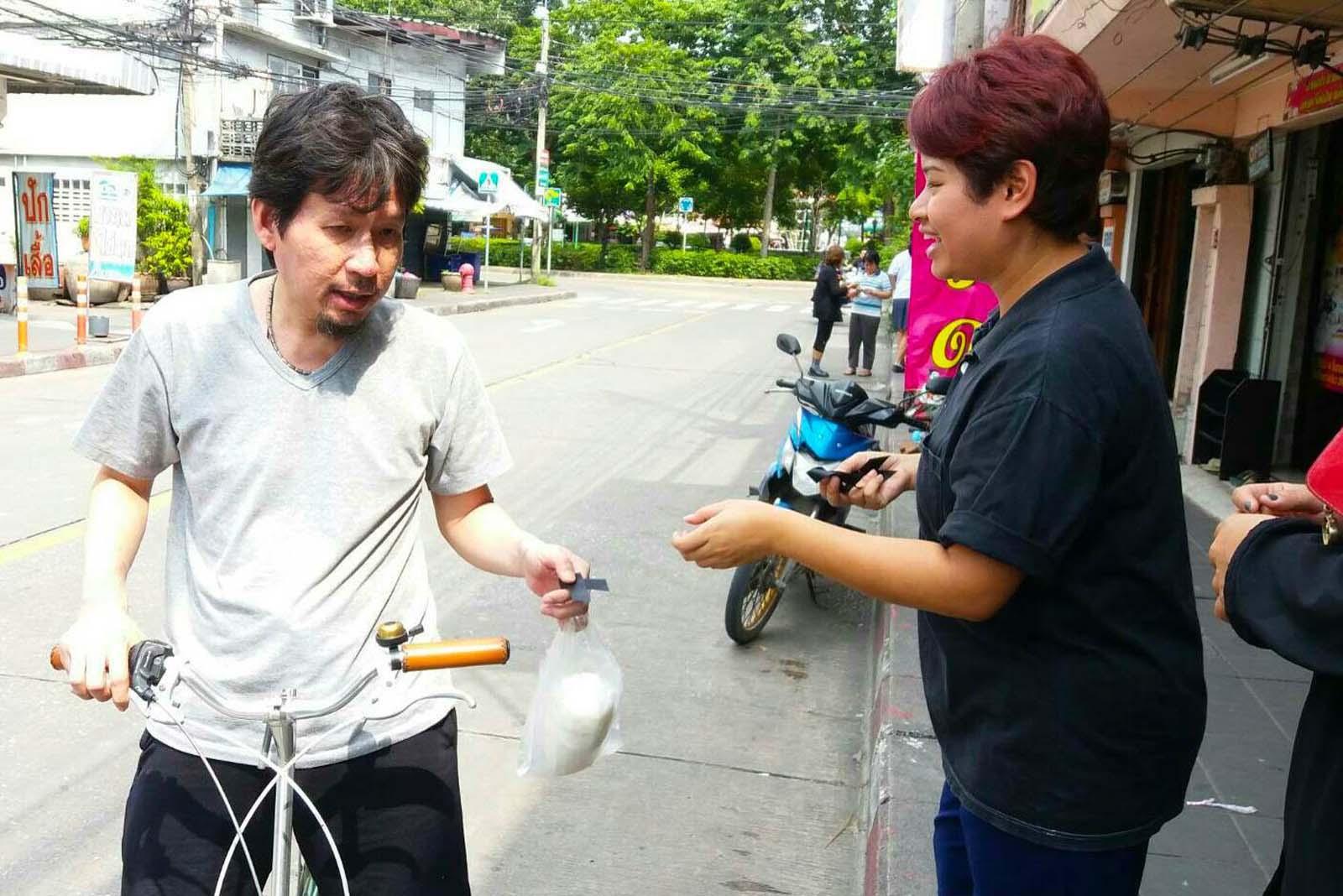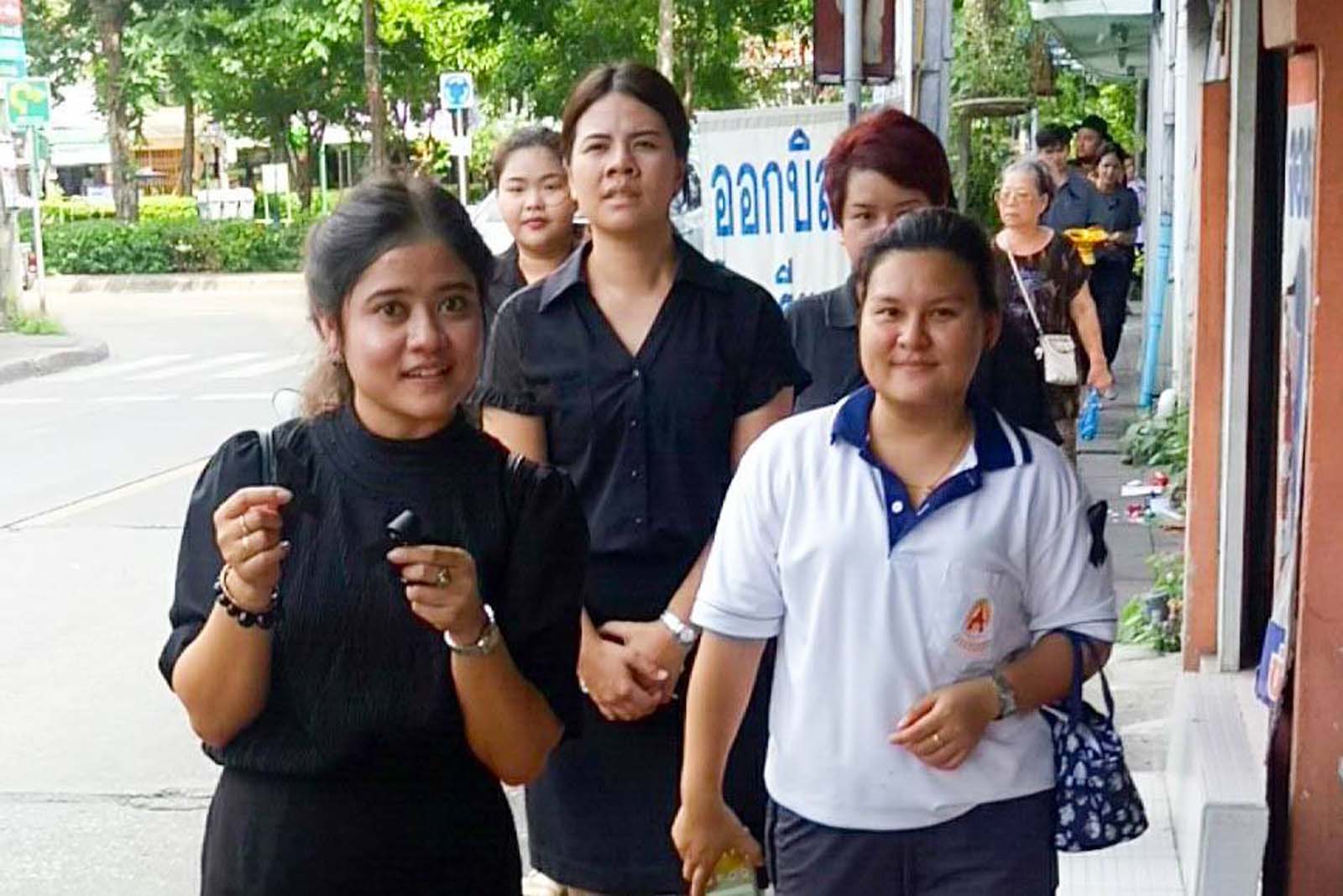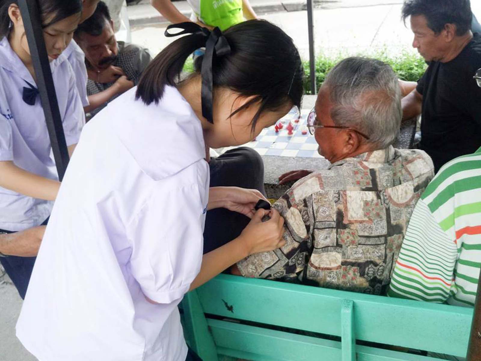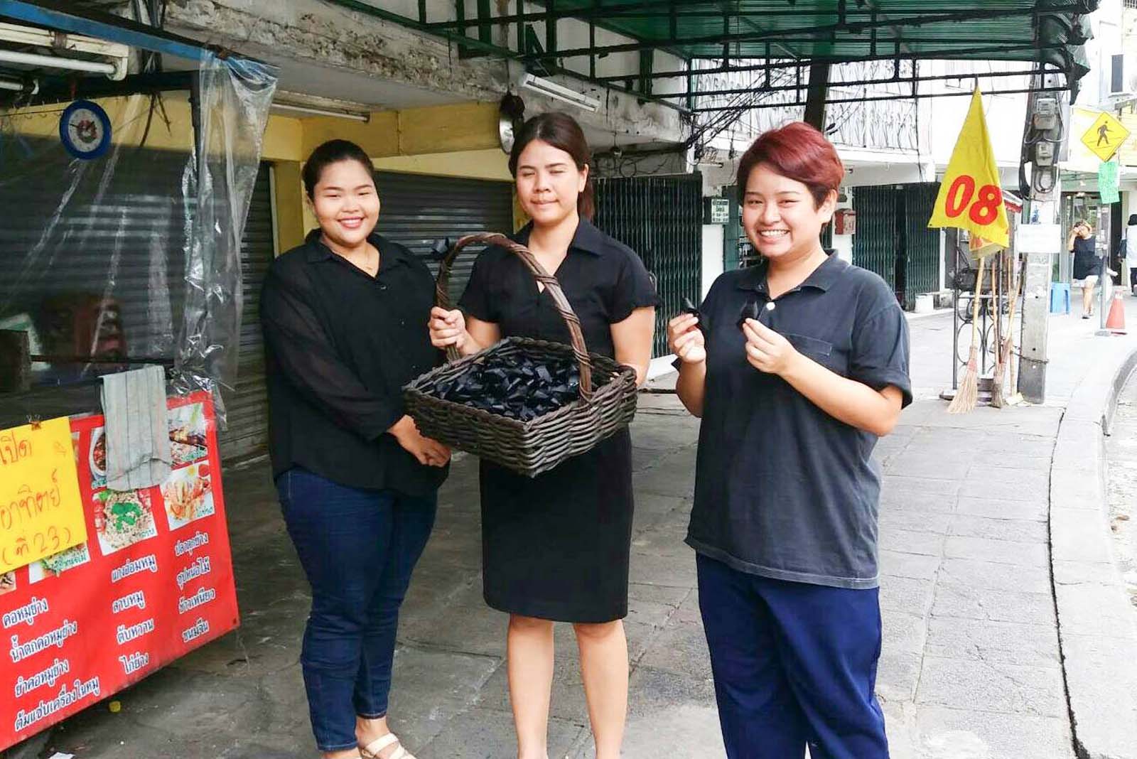 จัดทำริบบิ้นไว้ทุกข์และนำแจกให้แก่ประชาชนในชุมชุมหมู่บ้านเศรษฐกิจ