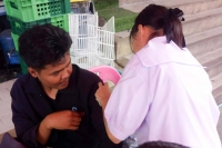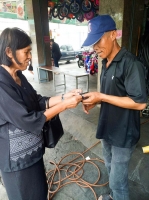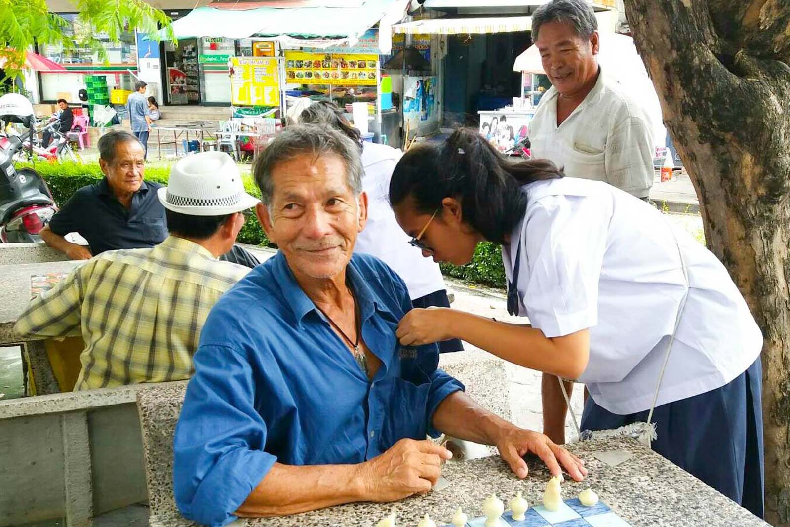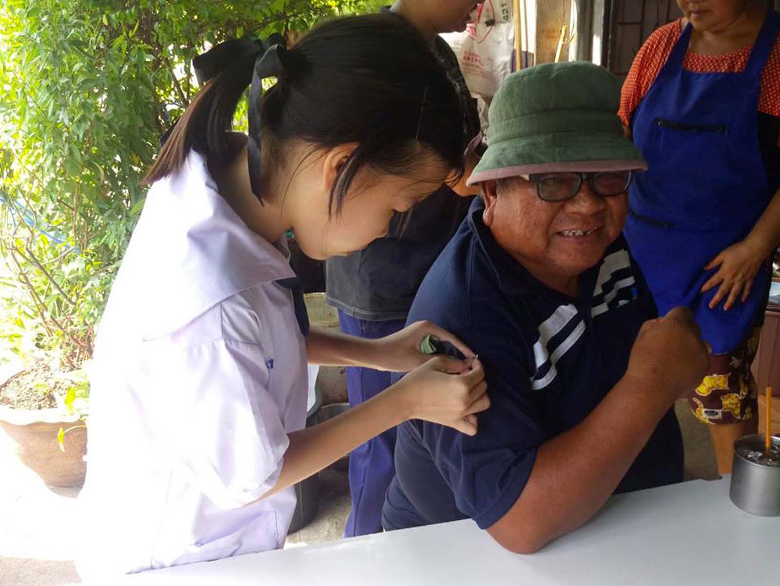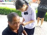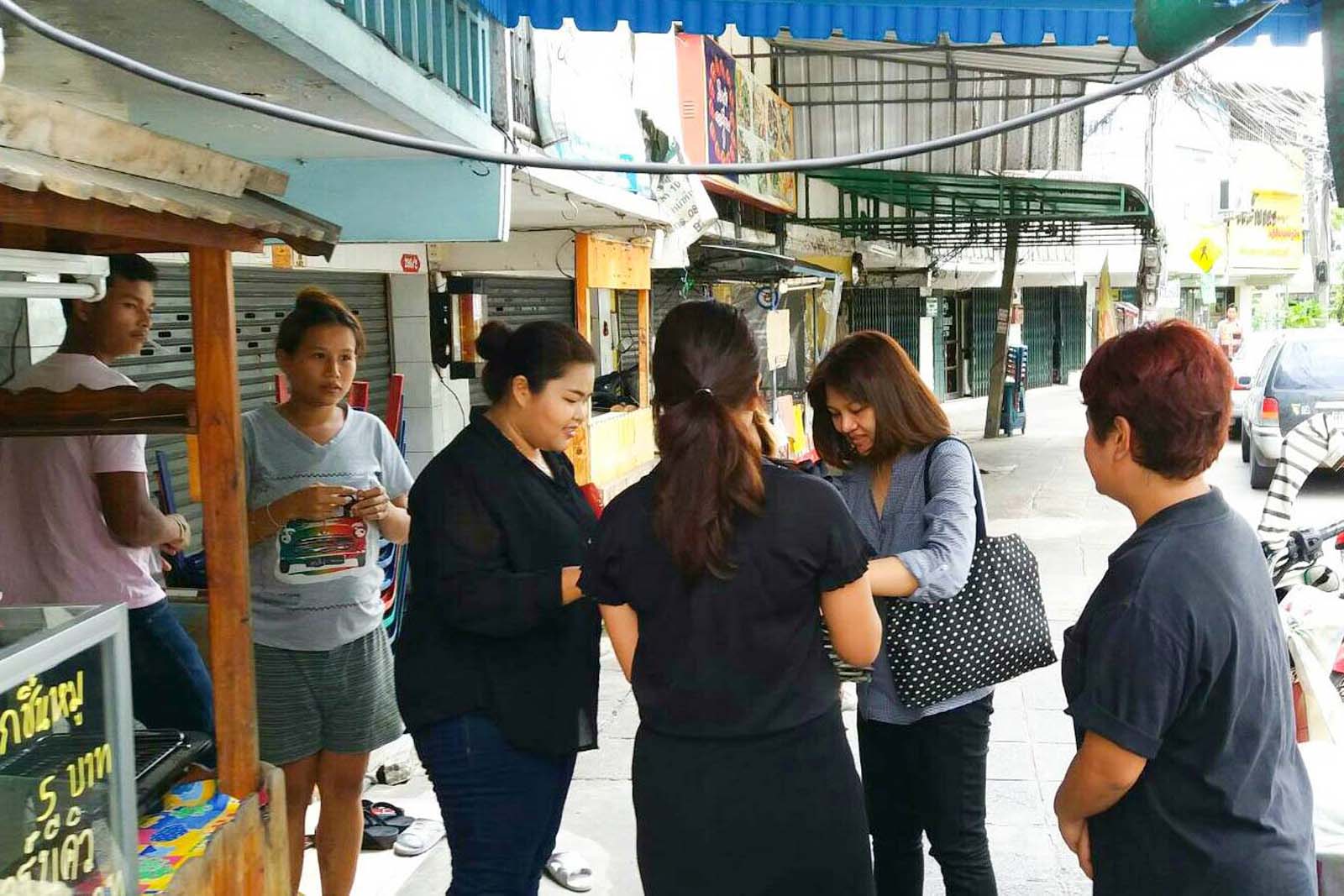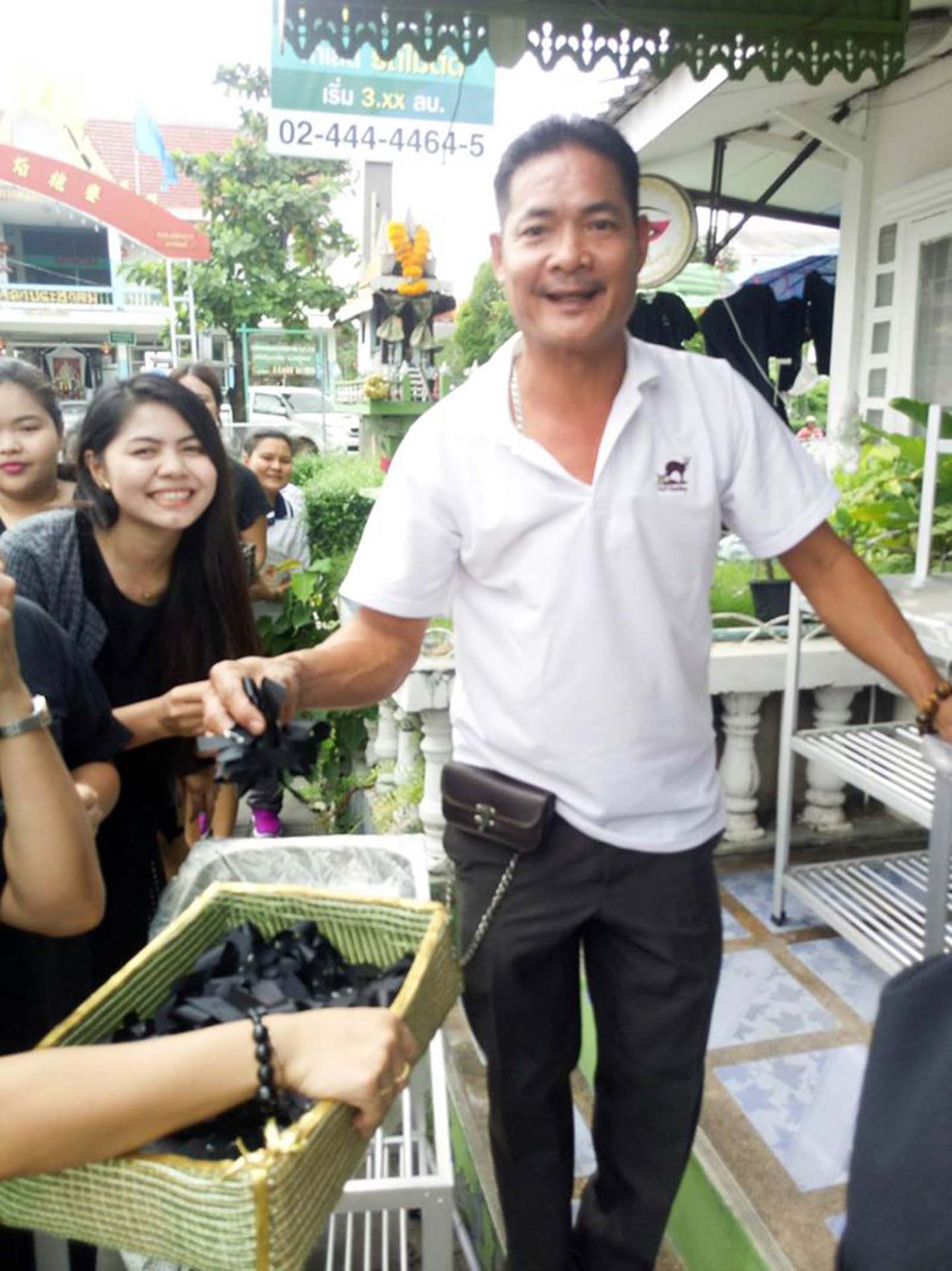 จัดทำริบบิ้นไว้ทุกข์และนำแจกให้แก่ประชาชนในชุมชุมหมู่บ้านเศรษฐกิจ