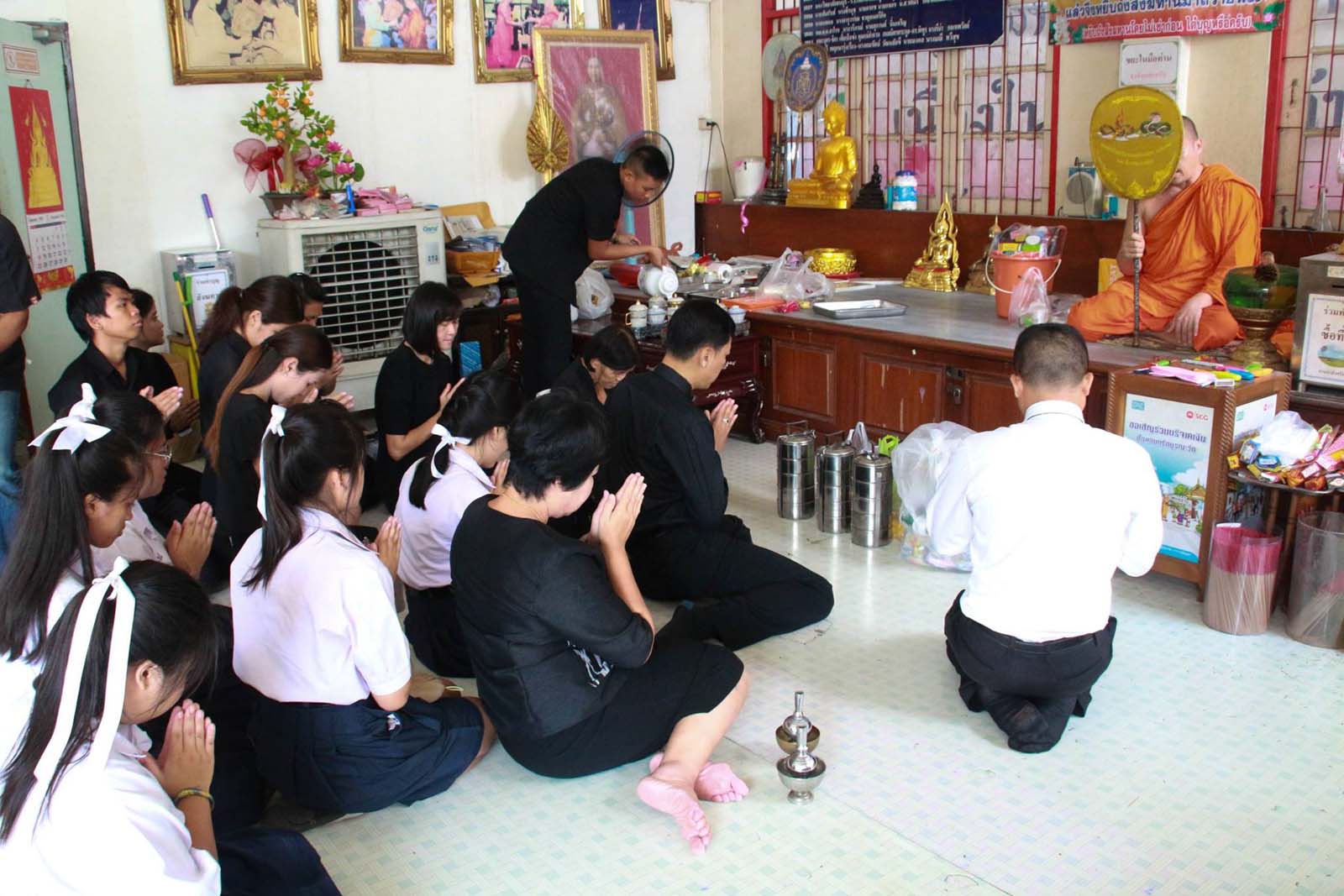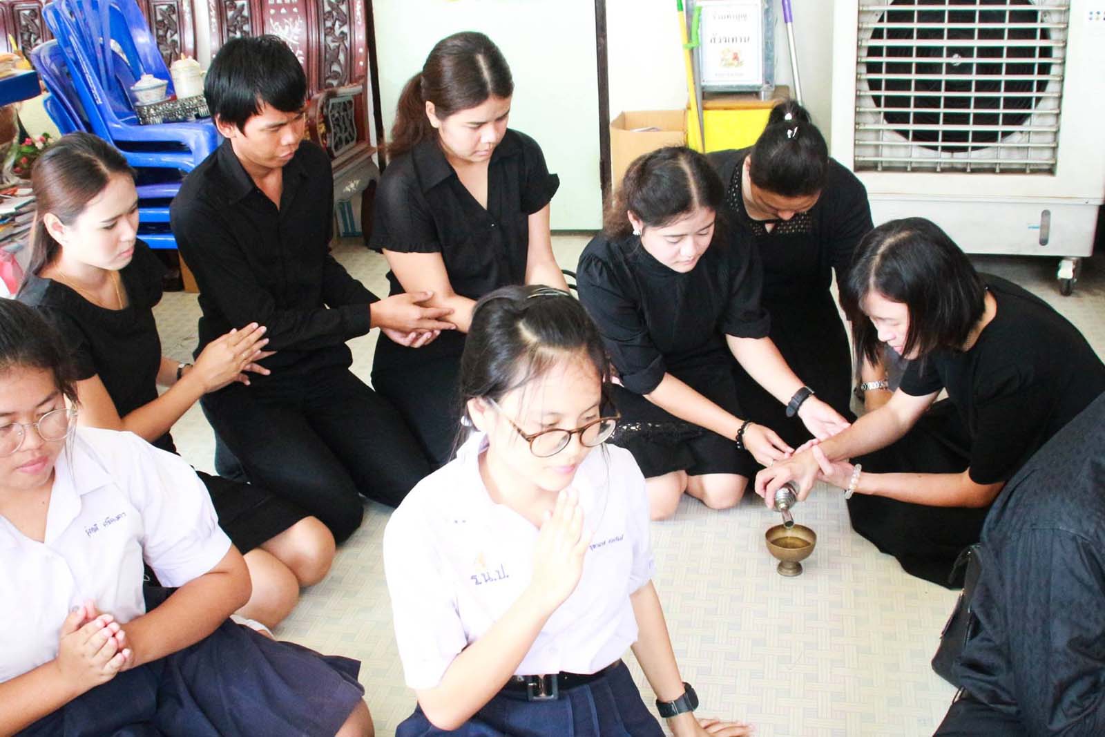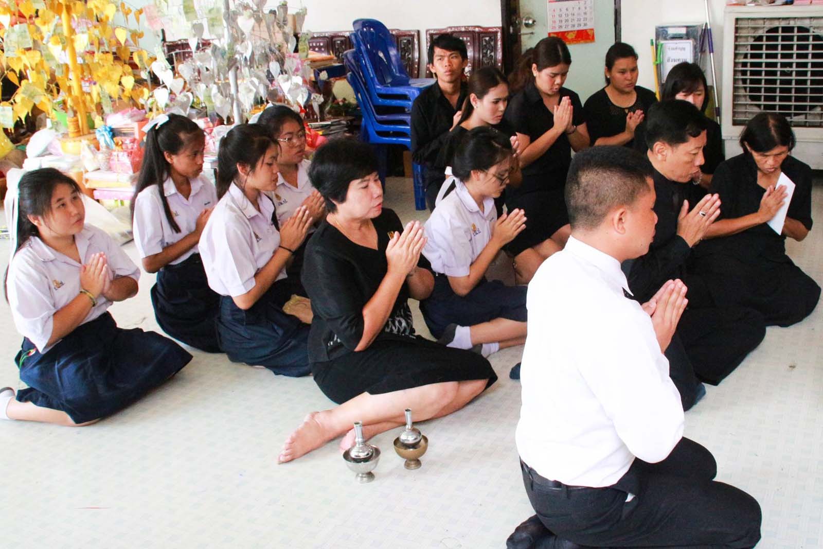 นายธนะกุล ช้อนแก้ว ผู้อำนวยการโรงเรียนราชวินิตบางแคปานขำ ได้นำคณะครู บุคลากรทางการศึกษาและนักเรียน เข้าร่วมในพิธีบำเพ็ญกุศลสวดอภิธรรมเพื่อถวายเป็นพระราชกุศล วันที่ ๑๔ ตุลาคม - ๑๔ พฤศจิกายน ๒๕๕๙ ณ ศาลาเฉลิมพระเกียรติ ๖๐ พรรษา วัดบุณยประดิษฐ์ พระอารามหลวง เขตบางแค กรุงเทพมหานคร |