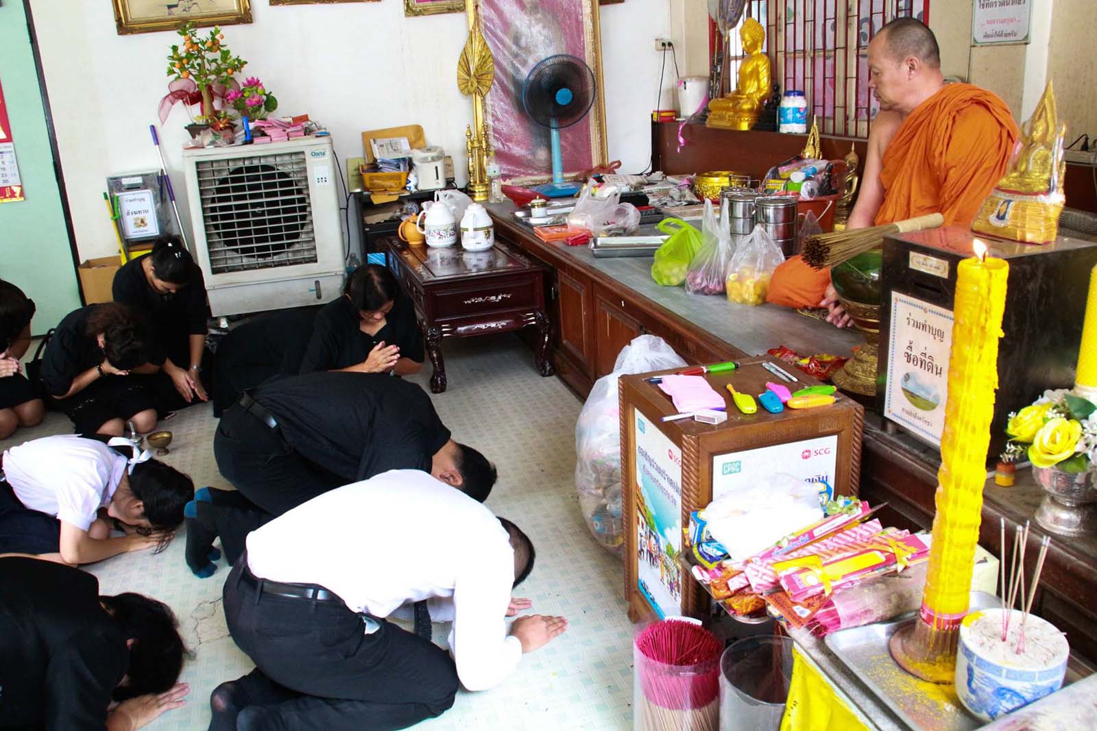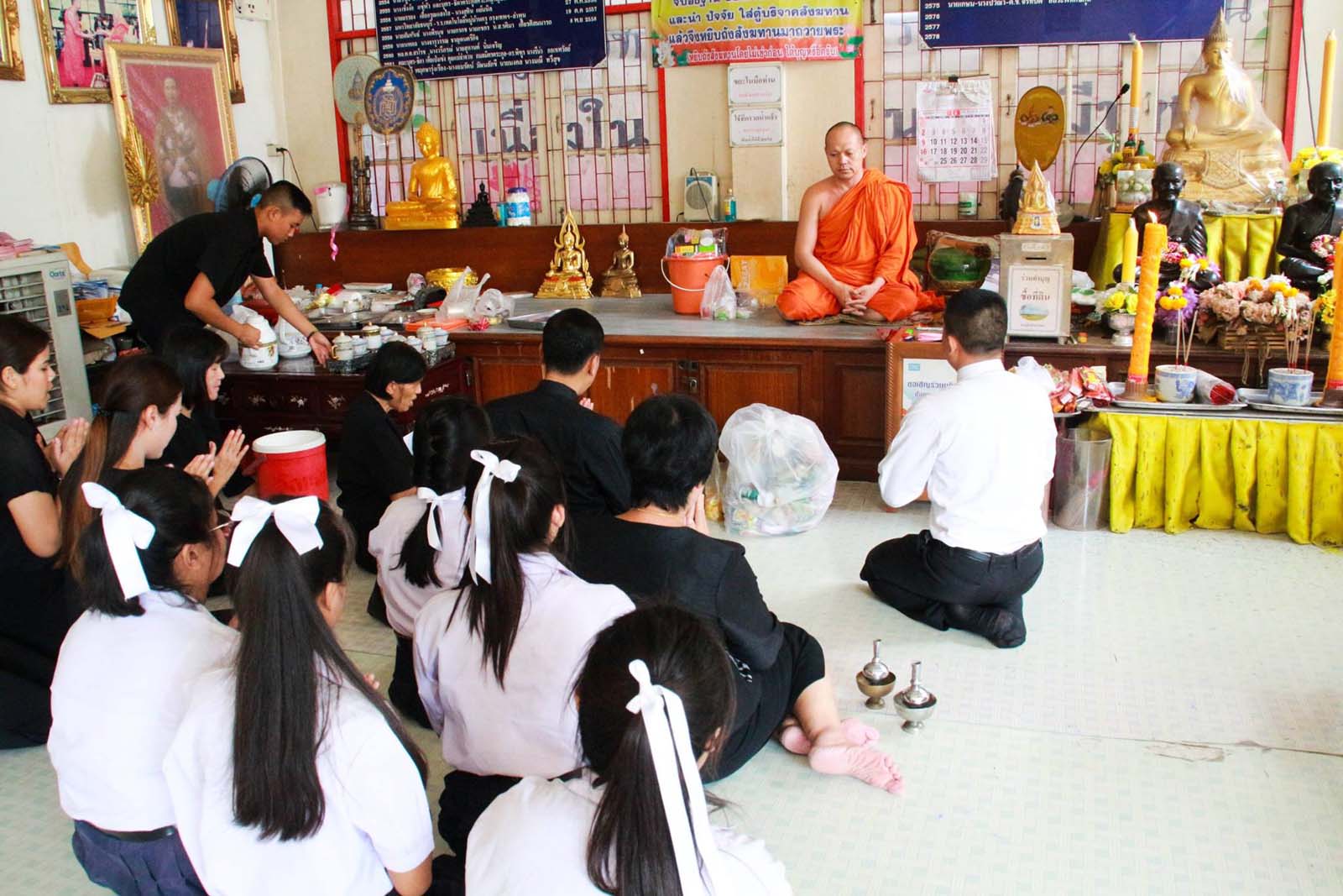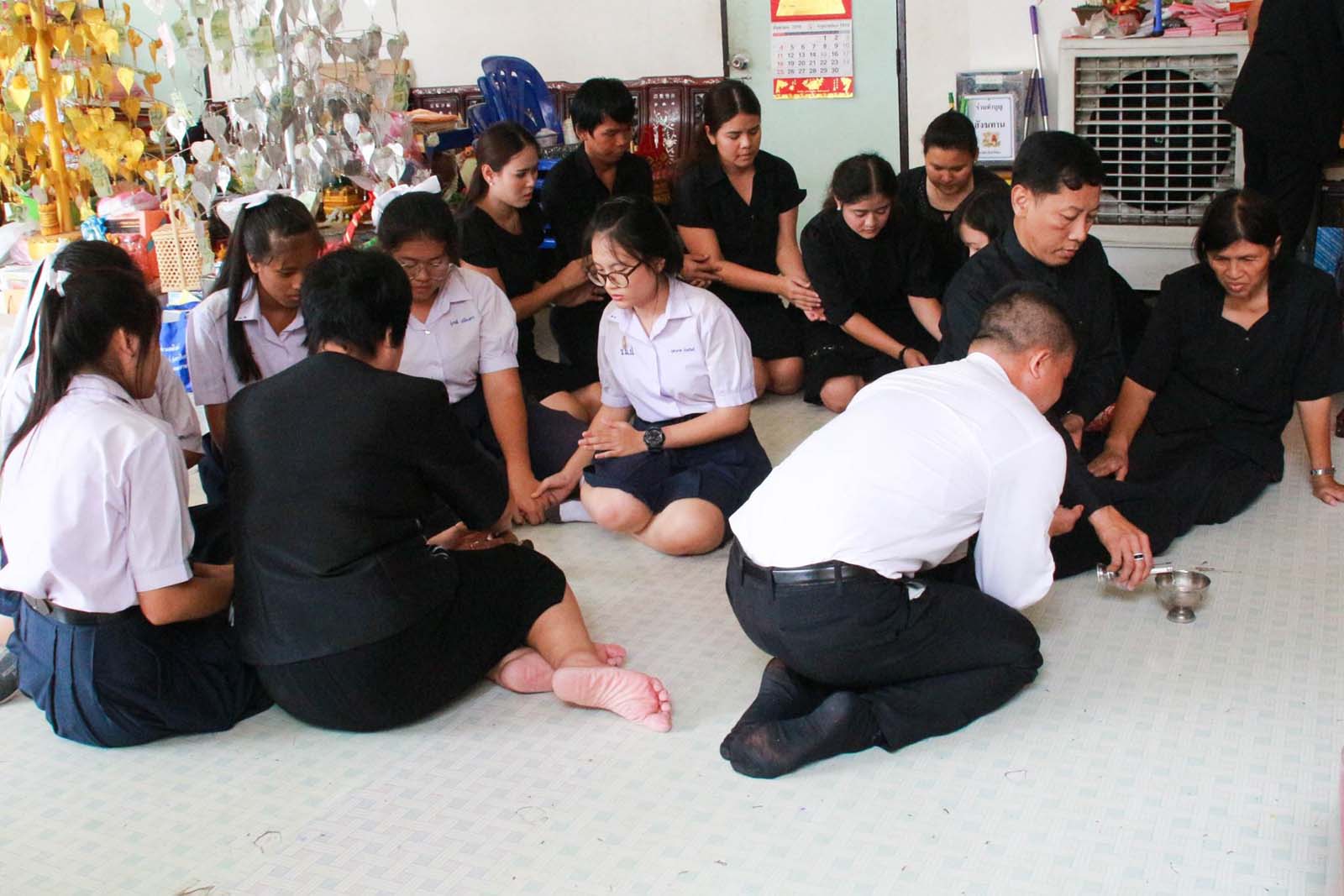 นายธนะกุล ช้อนแก้ว ผู้อำนวยการโรงเรียนราชวินิตบางแคปานขำ ได้นำคณะครู บุคลากรทางการศึกษาและนักเรียน เข้าร่วมในพิธีบำเพ็ญกุศลสวดอภิธรรมเพื่อถวายเป็นพระราชกุศล วันที่ ๑๔ ตุลาคม - ๑๔ พฤศจิกายน ๒๕๕๙ ณ ศาลาเฉลิมพระเกียรติ ๖๐ พรรษา วัดบุณยประดิษฐ์ พระอารามหลวง เขตบางแค กรุงเทพมหานคร |
