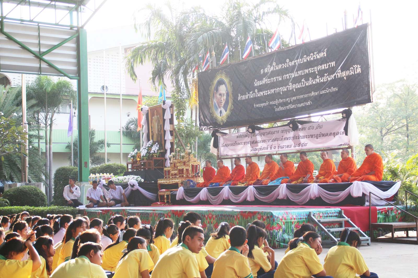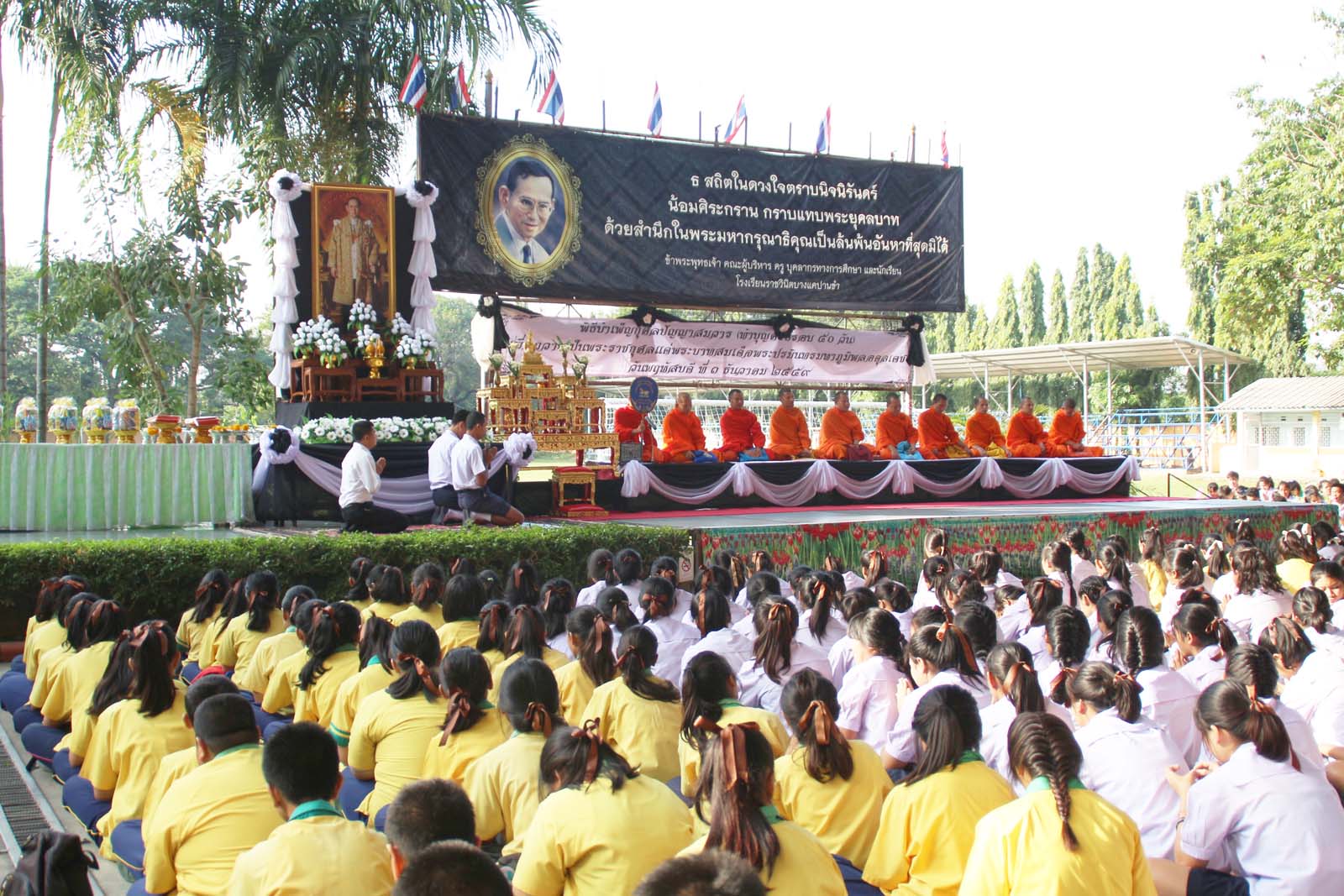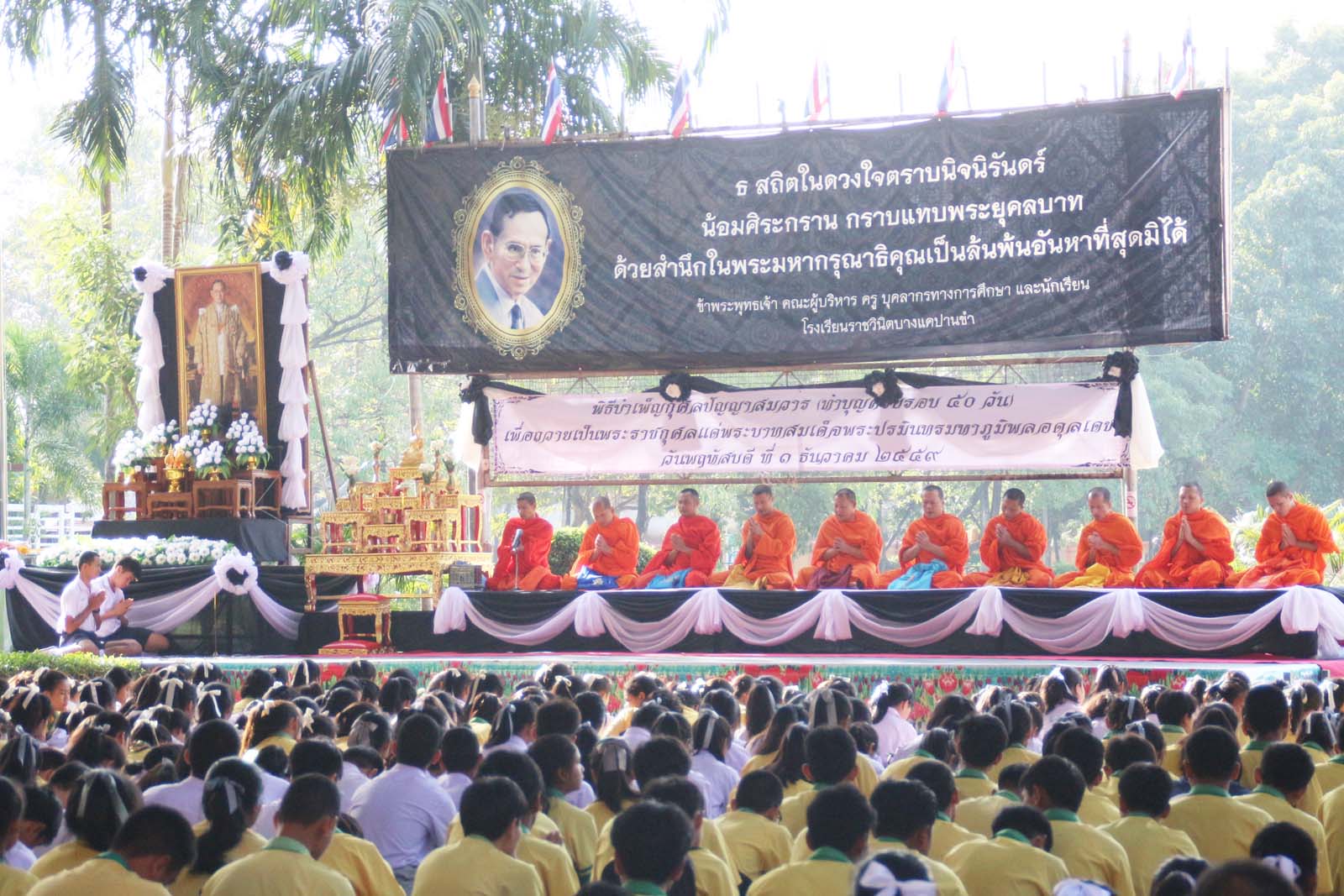 พิธีบำเพ็ญกุศลปัญญาสมวาร (ทำบุญครบรอบ ๕๐ วัน) เพื่อถวายเป็นพระราชกุศลแด่พระบาทสมเด็จพระปรมินทรมหาภูมิพลอดุลเดช ในวันพฤหัสบดีที่ ๑ ธันวาคม ๒๕๕๙ ณ โรงเรียนราชวินิตบางแคปานขำ |