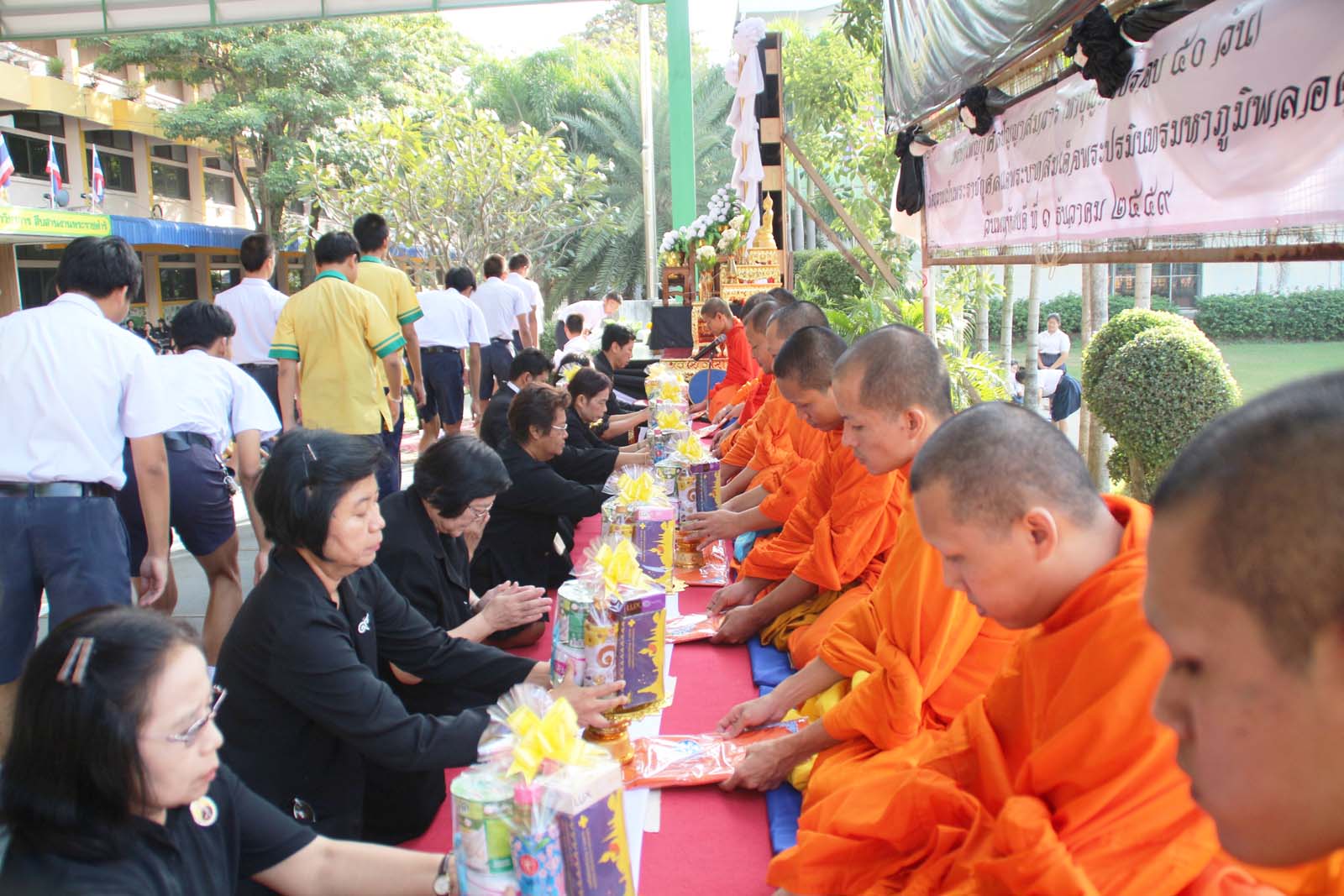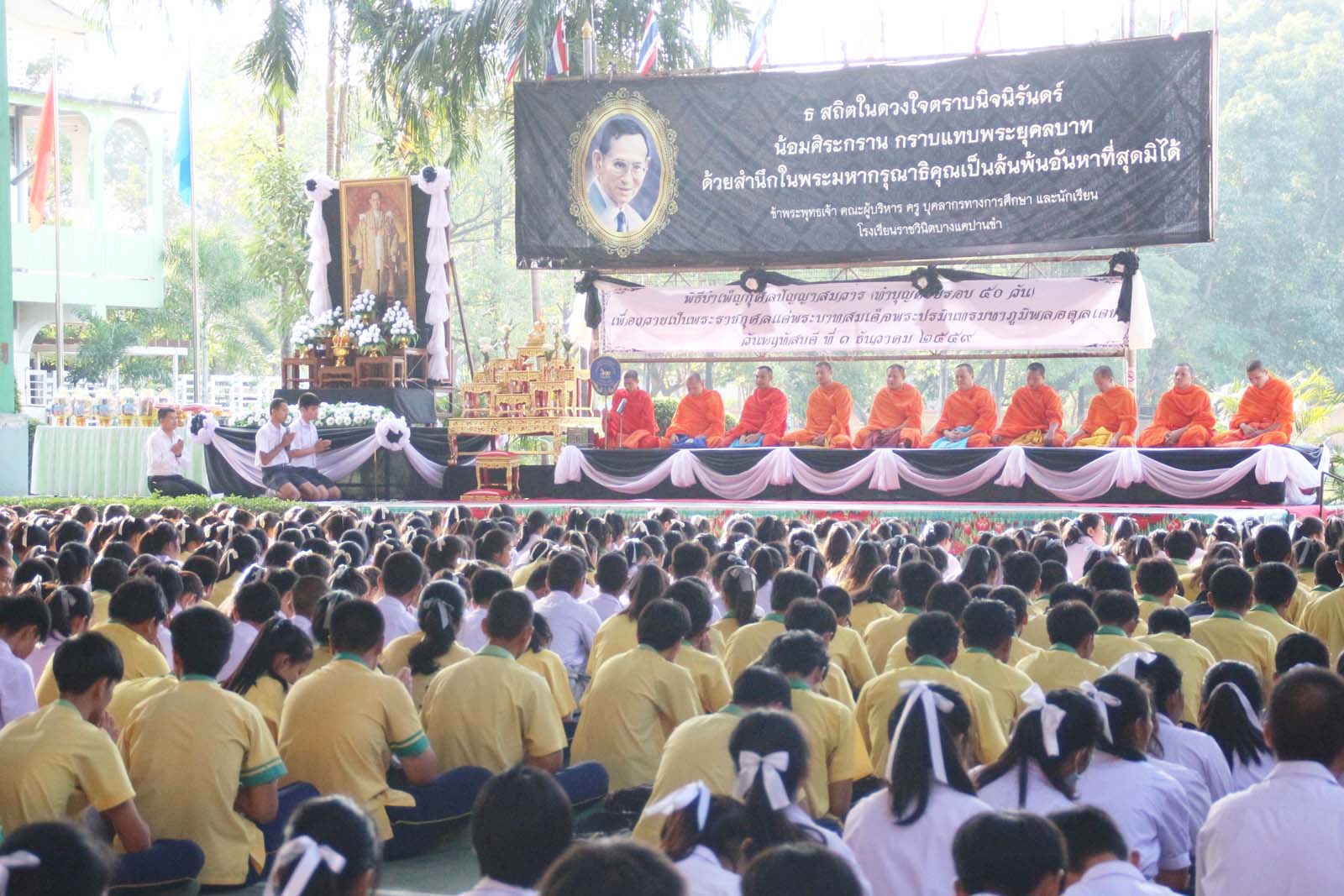 พิธีบำเพ็ญกุศลปัญญาสมวาร (ทำบุญครบรอบ ๕๐ วัน) เพื่อถวายเป็นพระราชกุศลแด่พระบาทสมเด็จพระปรมินทรมหาภูมิพลอดุลเดช ในวันพฤหัสบดีที่ ๑ ธันวาคม ๒๕๕๙ ณ โรงเรียนราชวินิตบางแคปานขำ |