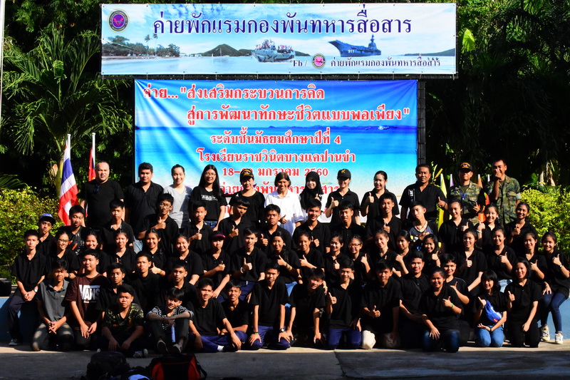 กิจกรรมค่ายวิชาการ ระดับชั้นมัธยมศึกษาปีที่ ๔ “ส่งเสริมกระบวนการคิดสู่การพัฒนาทักษะชีวิตแบบพอเพียง” ณ ค่ายกรมหลวงชุมพร (กองพันทหารสื่อสาร) หน่วยบัญชาการนาวิกโยธิน ต.สัตหีบ อ.สัตหีบ จ.ชลบุรี ๑๘-๒๐ มกราคม ๒๕๖๐ |