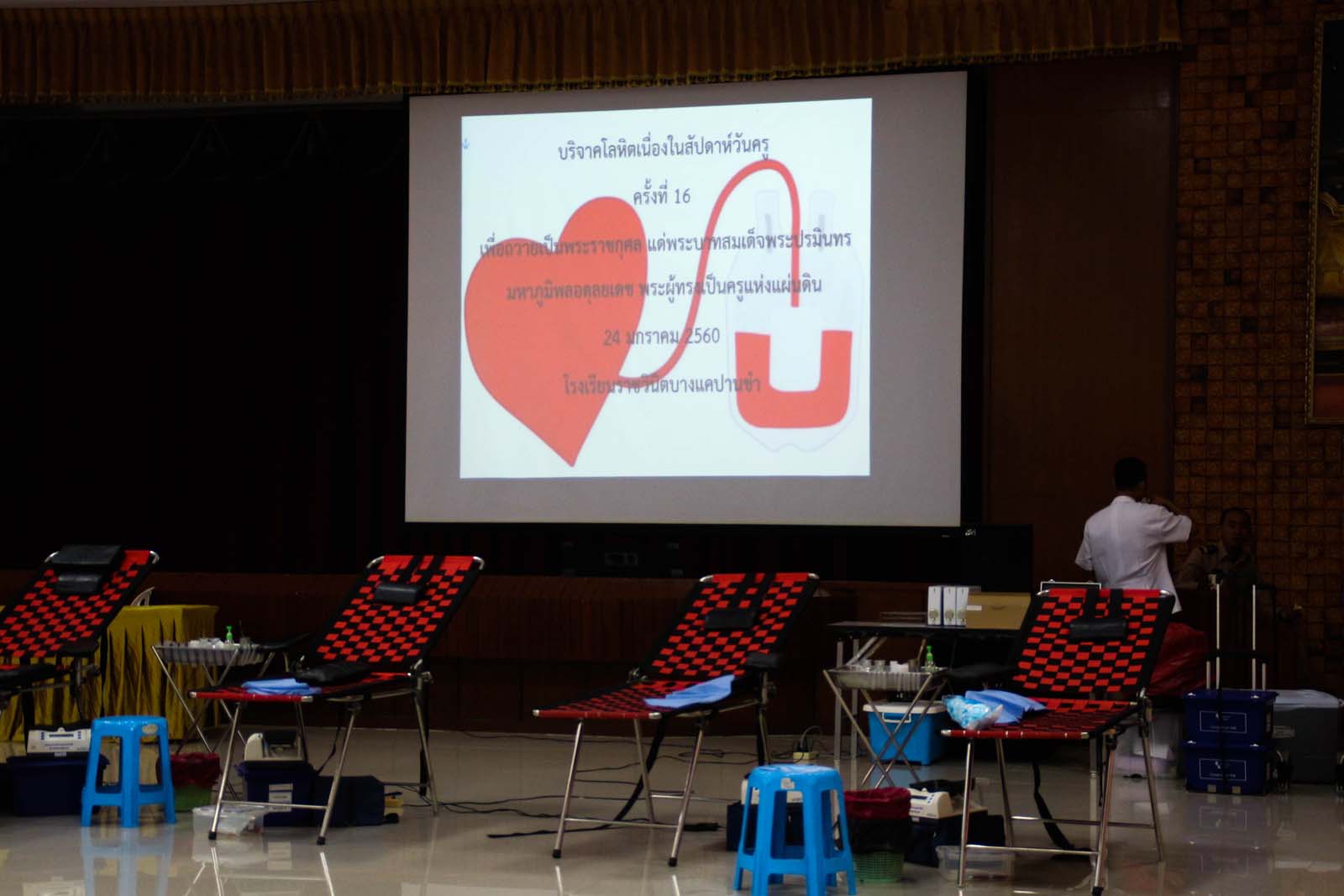 บริจาคโลหิตเนื่องในสัปดาห์วันครู ครั้งที่ ๑๖ เพื่อถวายเป็นพระราชกุศล แด่พระบาทสมเด็จพระปรมินทรมหาภูมิพลอดุลยเดช พระผู้ทรงเป็นครูแห่งแผ่นดิน โดยรถรับบริจาคโลหิตเคลื่อนที่ จากโรงพยาบาลสมเด็จพระปิ่นเกล้า ในวันอังคารที่ ๒๔ มกราคม ๒๕๖๐ ณ หอประชุม โรงเรียนราชวินิตบางแคปานขำ |