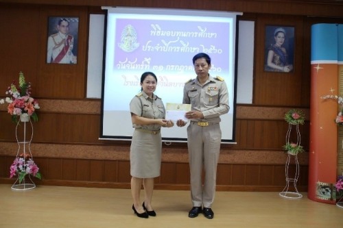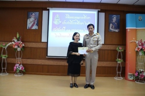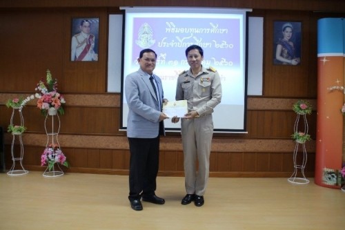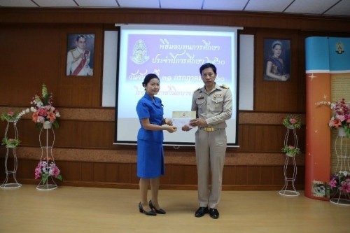 ในวันจันทร์ที่ 31 กรกฎาคม 2560 ณ ห้องประชุมประกายเพชร โดยท่านผู้อำนวยการ ธนะกุล ช้อนแก้ว เป็นประธานในพิธี ซึ่งมีผู้อุปการะคุณมอบทุนการศึกษา จำนวน 97 ทุน เป็นเงินจำนวน 236,000 บาท และมีพิธีมอบเกียรติคุณบัตรให้กับผู้มีอุปการะคุณทุกท่าน |