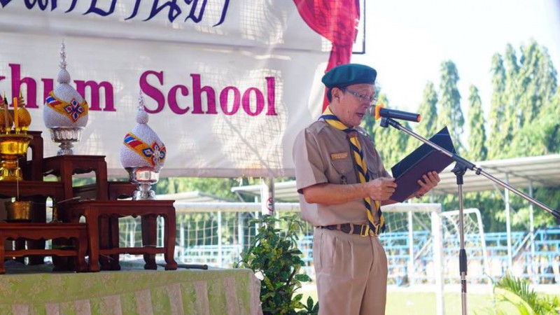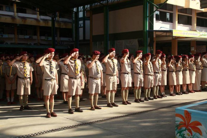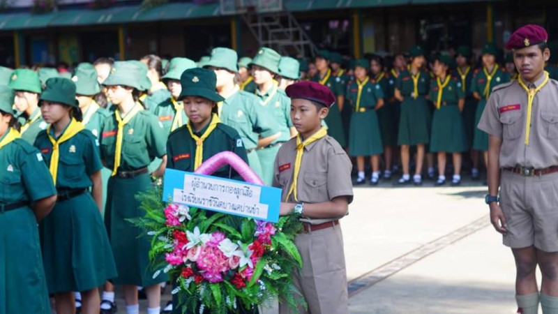 วันจันทร์ที่ 26 พฤศจิกายน 2561 นายสันติพงศ์ ชินประดิษฐ ผู้อำนวยการโรงเรียน เป็นประธานในพิธีถวายราชสดุดีพระบาทสมเด็จพระมงกุฎเกล้าเจ้าอยู่หัวรัชกาลที่ 6 เนื่องในวันมหาธีรราชเจ้า โดยมีลูกเสือ- เนตรนารี ระดับชั้นมัธยมศึกษาปีที่ 1-3 และผู้กำกับลุกเสือ ร่วมพิธีถวายราชสดุดีและวางพวงมาลา ณ ลานอเนกประสงค์โรงเรียนราชวินิตบางแคปานขำ |
