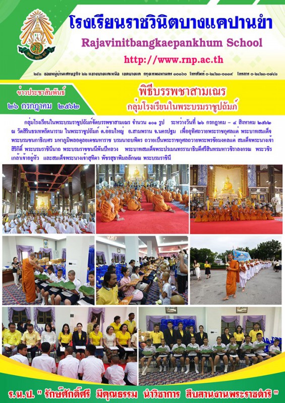 พิธีบรรชาสามเณร กลุ่มโรงเรียนในพระบรมราชูปถัมภ์