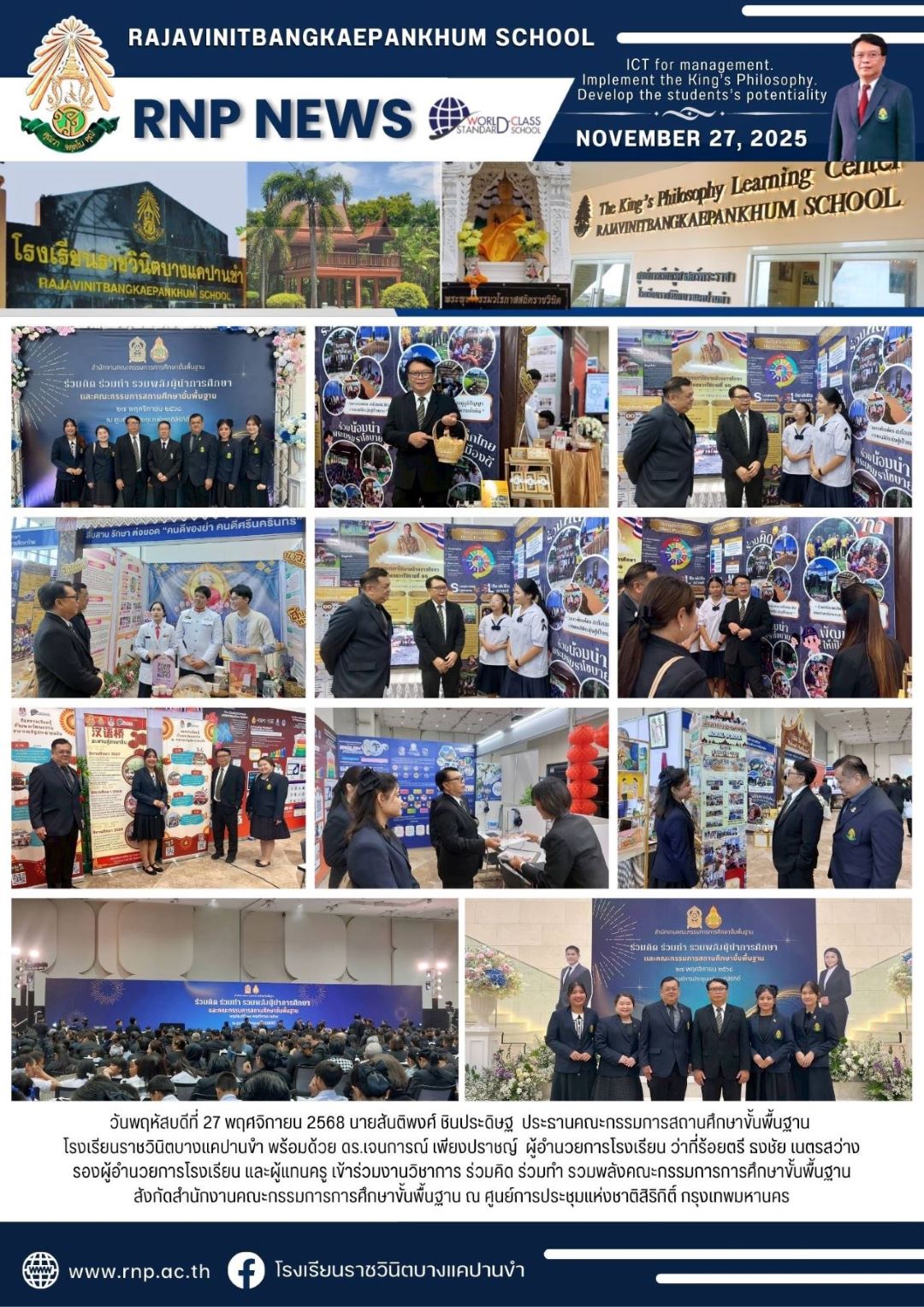| วันพฤหัสบดีที่ 27 พฤศจิกายน 2568 นายสันติพงศ์ ชินประดิษฐ ประธานคณะกรรมการสถานศึกษาขั้นพื้นฐาน โรงเรียนราชวินิตบางแคปานขำ พร้อมด้วย ดร.เจนการณ์ เพียงปราชญ์ ผู้อำนวยการโรงเรียน ว่าที่ร้อยตรี ธงชัย เนตรสว่าง รองผู้อำนวยการโรงเรียน และผู้แทนครู เข้าร่วมงานวิชาการ ร่วมคิด ร่วมทำ รวมพลังคณะกรรมการการศึกษาขั้นพื้นฐาน สังกัดสำนักงานคณะกรรมการการศึกษาขั้นพื้นฐาน ณ ศูนย์การประชุมแห่งชาติสิริกิติ์ กรุงเทพมหานคร |