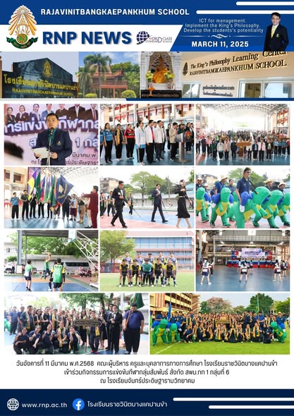 วันอังคารที่ 11 มีนาคม พ.ศ.2568 คณะผู้บริหาร ครูและบุคลาการทางการศึกษา โรงเรียนราชวินิตบางแคปานขำ เข้าร่วมกิจกรรมการแข่งขันกีฬากลุ่มสัมพันธ์ สังกัด สพม.กท 1 กลุ่มที่ 6 ณ โรงเรียนจันทร์ประดิษฐารามวิทยาคม |