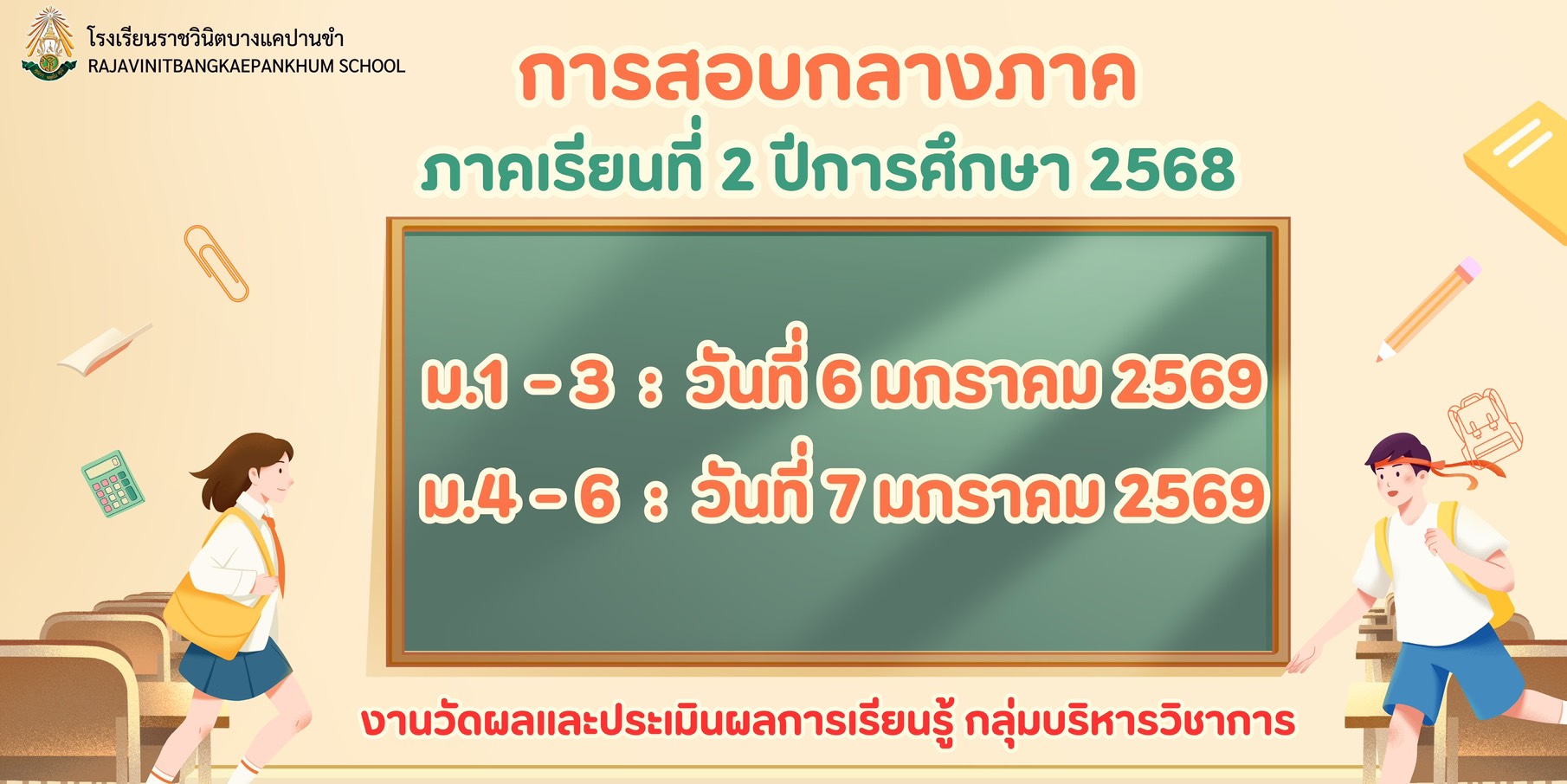 ปฎิทินกำหนดการการสอบกลางภาคเรียนที่ 2/2568 19 ธ.ค. 68