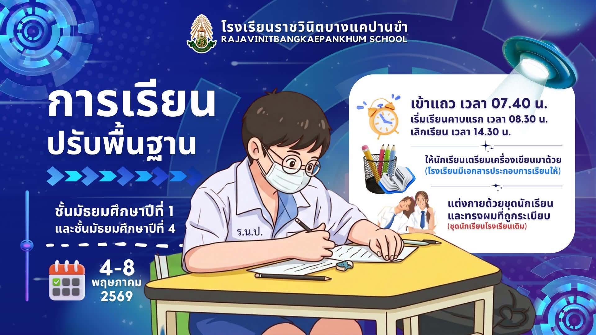 ประกาศโรงเรียนราชวินิตบางแคปานขำ เรื่อง แนวทางการปฏิบัติราชการนอกสถานที่ตั้งของสถานศึกษา (Work From Home) ตั้งแต่วันจันทร์ ที่ 16 มีนาคม 2569 14 มี.ค. 69