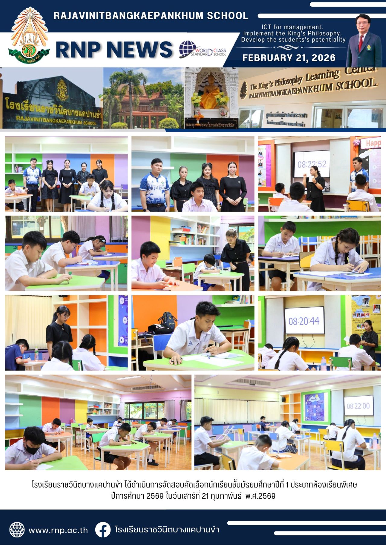 | โรงเรียนราชวินิตบางแคปานขำ ได้ดำเนินการจัดสอบคัดเลือกนักเรียนชั้นมัธยมศึกษาปีที่ 1 ประเภทห้องเรียนพิเศษ ปีการศึกษา 2569 ในวันเสาร์ที่ 21 กุมภาพันธ์ พ.ศ.2569 |