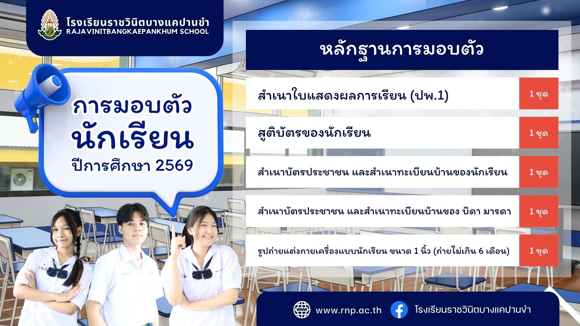 3. สำเนาบัตรประชาชน และสำเนาทะเบียนบ้านของนักเรียน 1 ชุด