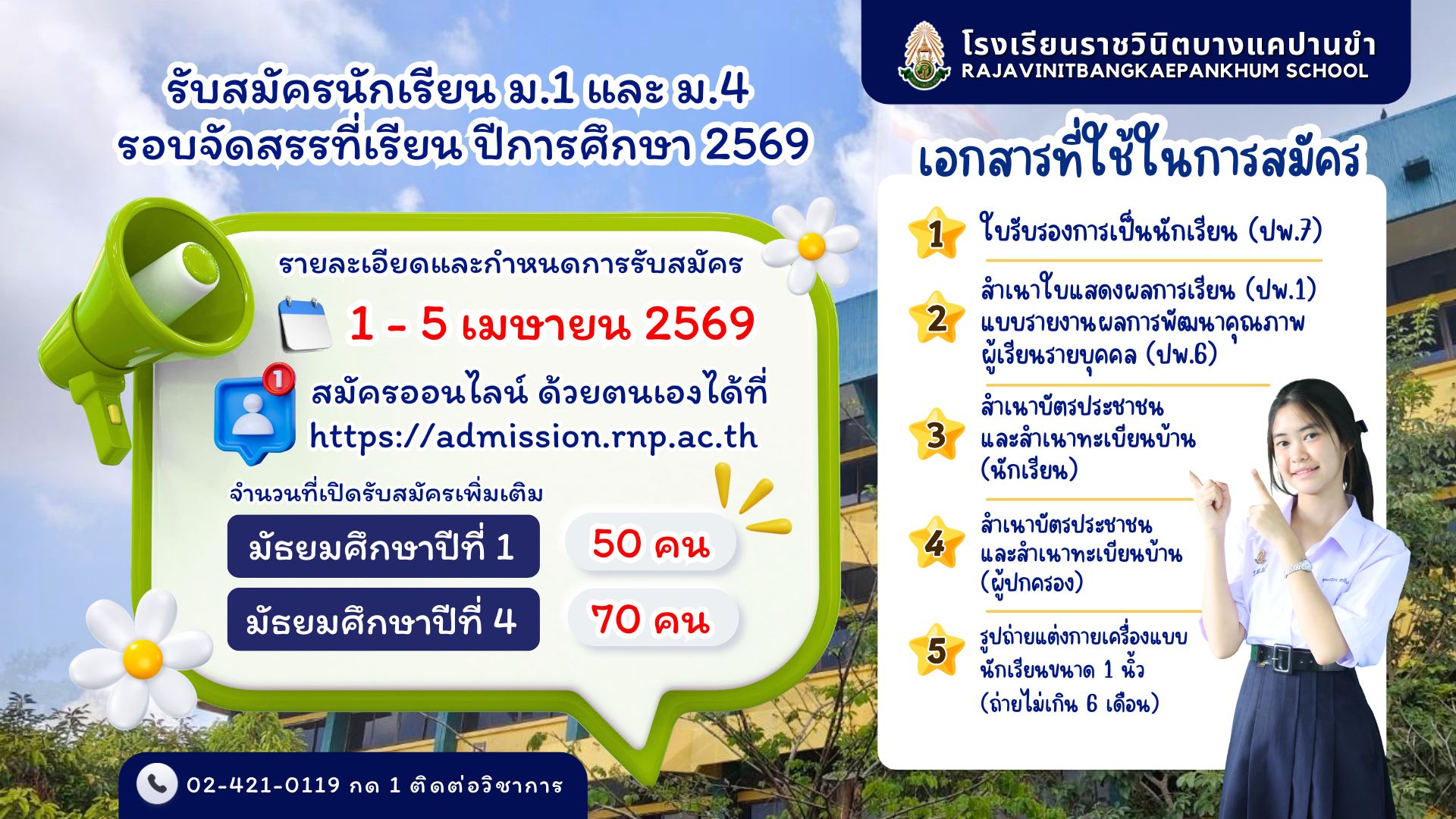 ประกาศโรงเรียนราชวินิตบางแคปานขำ เรื่อง แนวทางการปฏิบัติราชการนอกสถานที่ตั้งของสถานศึกษา (Work From Home) ตั้งแต่วันจันทร์ ที่ 16 มีนาคม 2569 14 มี.ค. 69