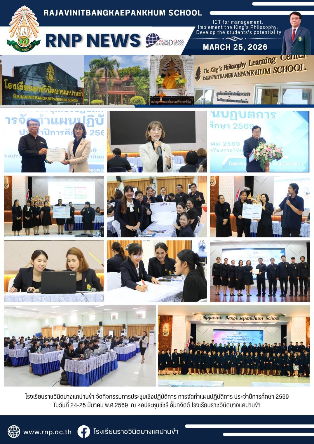 | โรงเรียนราชวินิตบางแคปานขำ จัดกิจกรรมการประชุมเชิงปฏิบัติการ การจัดทำแผนปฏิบัติการ ประจำปีการศึกษา 2569 ในวันที่ 24-25 มีนาคม พ.ศ.2569 ณ หอประชุมชัชรี ลิ้มทจิตต์ โรงเรียนราชวินิตบางแคปานขำ |