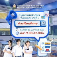 ประกาศรายชื่อนักเรียนผู้ผ่านการสอบคัดเลือก เพื่อเข้าศึกษาต่อระดับชั้นมัธยมศึกษาปีที่ 1 (ห้องเรียนพิเศษ) ปีการศึกษา 2569